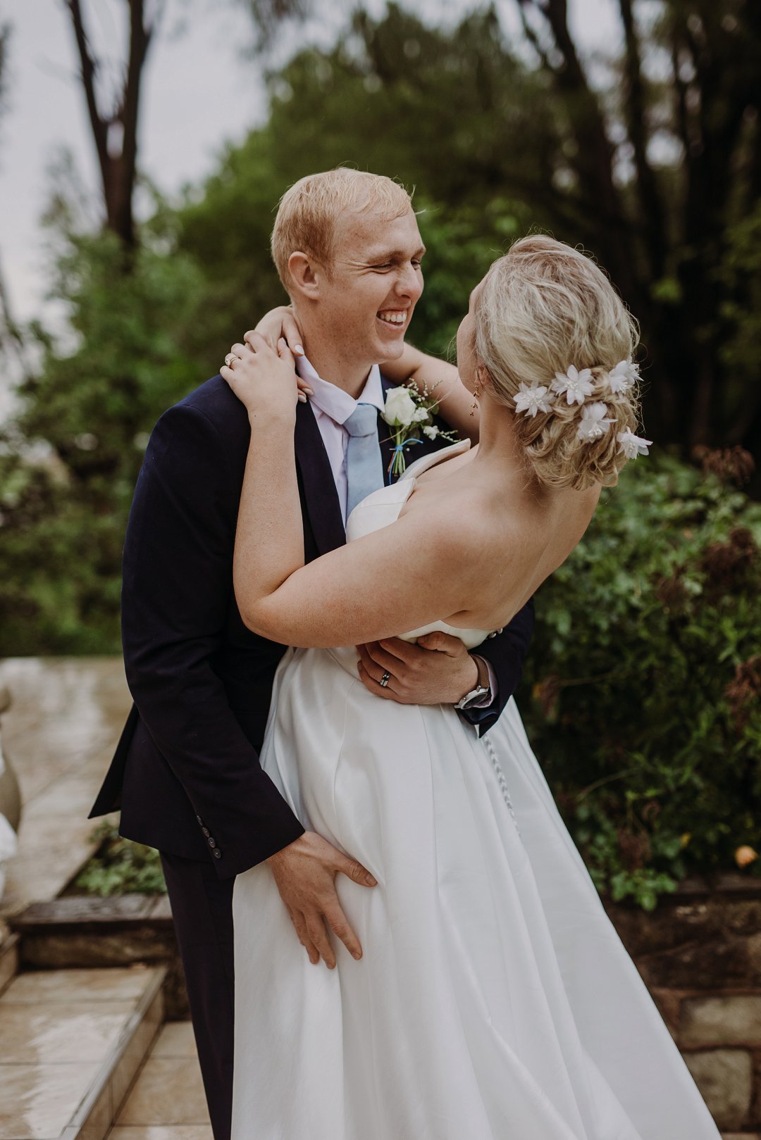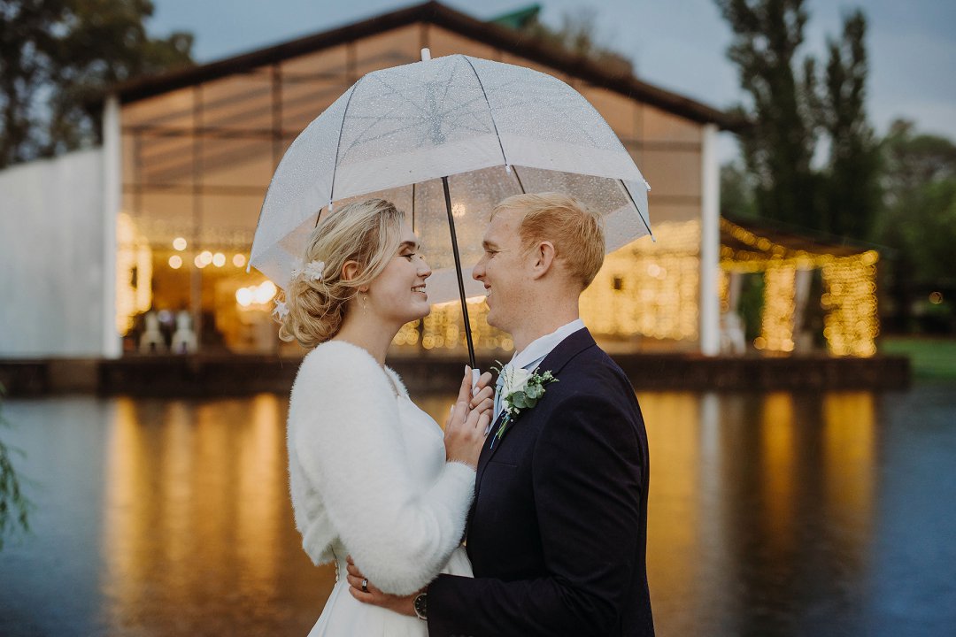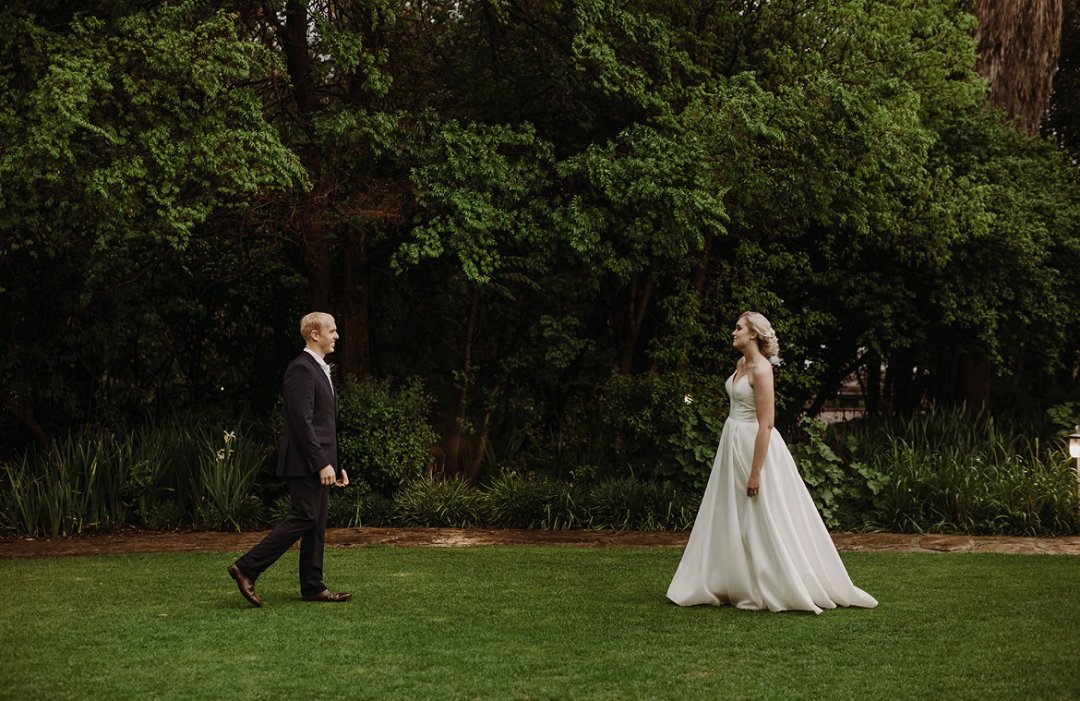 Op ons troudag, het ’n sagte reëntjie die heeldag geval. Die venue, ’n plaas net buite Bloemfontein, was slegs bereikbaar via ’n grondpad wat vinnig modderig geraak het met die reën. Sommige gaste het vasgesit, ander het met ‘n wilde rit aangekom en ’n paar moes skoene omruil. Deur dit alles het ons kalm gebly — en toe almal daar was, het alles seepglad verloop.