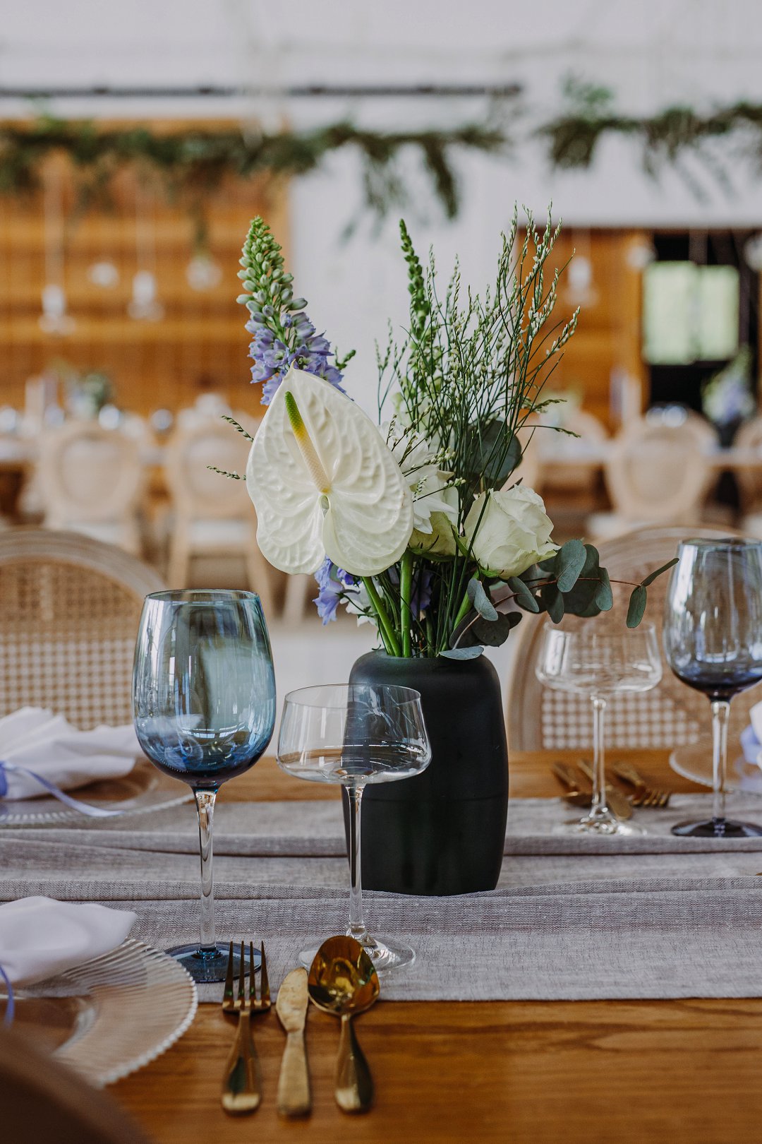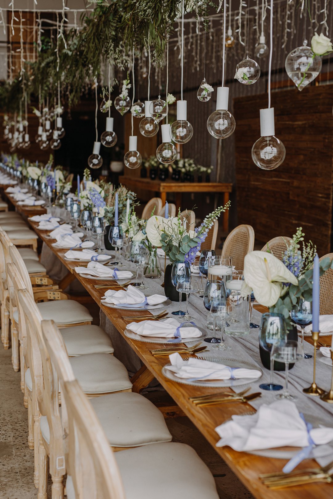 Die troubeplanner en my skoonma het selfs daarin geslaag om blou blomme buite seisoen te kry — iets wat amper onmoontlik gelyk het. Tog het dit perfek uitgewerk en ons sprokiestroue het presies die regte hoeveelheid blou gehad.