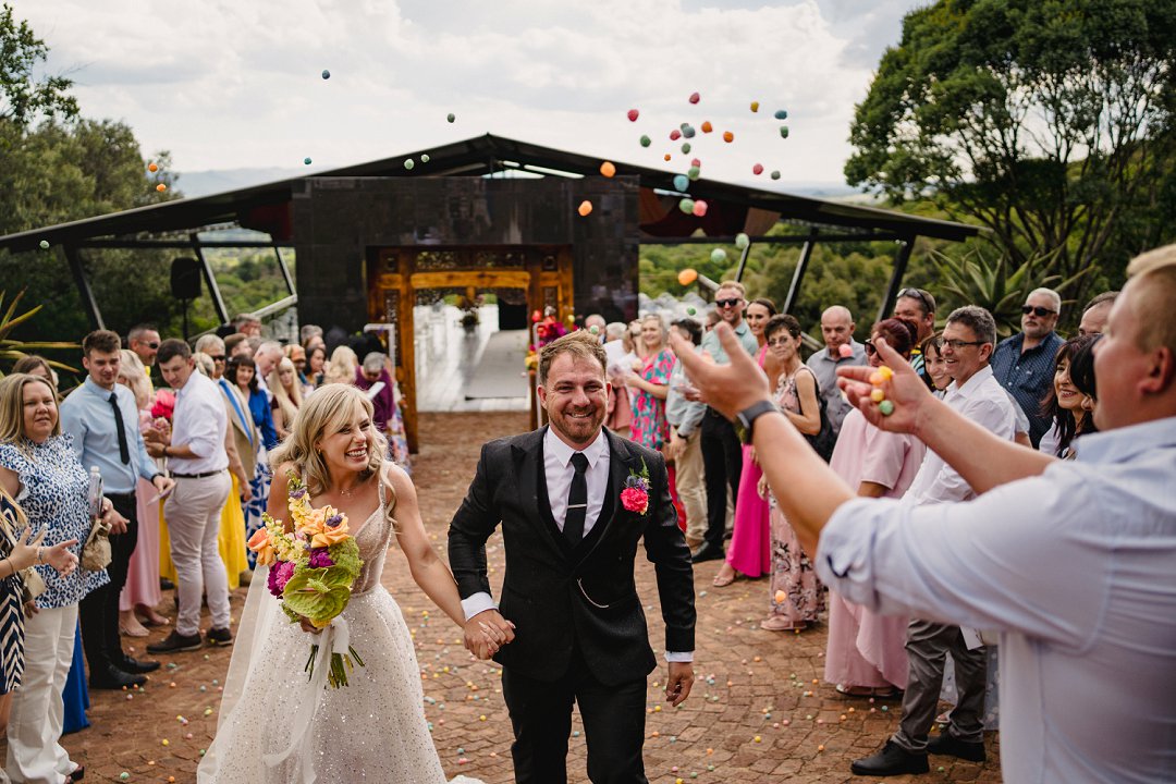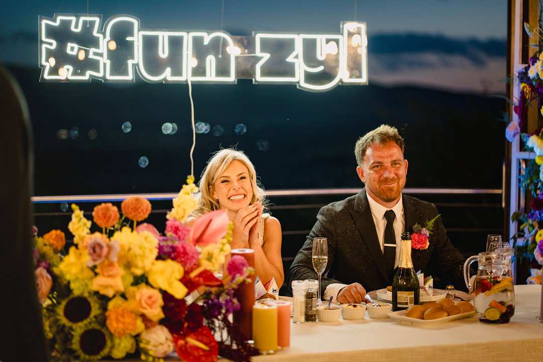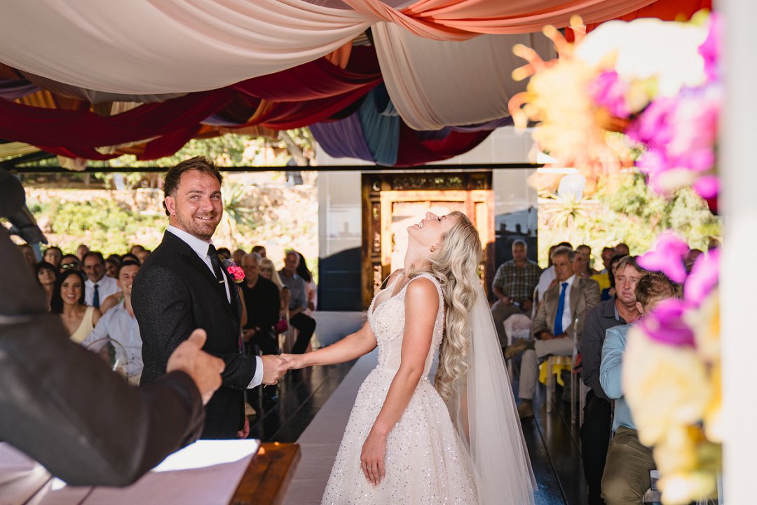 Ons venue was asemrowend, maar bowenal warm. Dit was nie net ’n plek nie — dit was ’n ruimte waar familie en vriende veilig gevoel het om saam met ons te lag, huil en feesvier. Die dekor het ons liefde vir kleur, natuur en speelsheid weerspieël — geen oordadigheid nie, net egtheid. Elke tafel, blom en detail het iets van ons reis vertel.