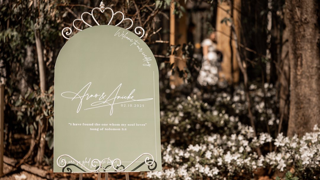 Music played a central role in our ceremony. Joshua na die Reën sang “Wêreld binne my” as my walk-in song — a moment filled with emotion and reverence. The Laudem Choir performed the Irish Blessing and Psalm 17 by Prof. Awie, their harmonies filling the space with a sense of heaven on earth. As part of our vows, we sang “I Will Be Here” together as a duet, accompanied by Johan Heystek — a moment that brought many to tears.