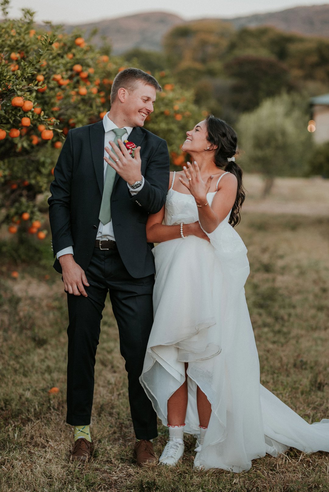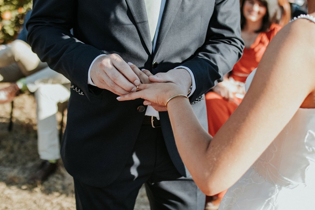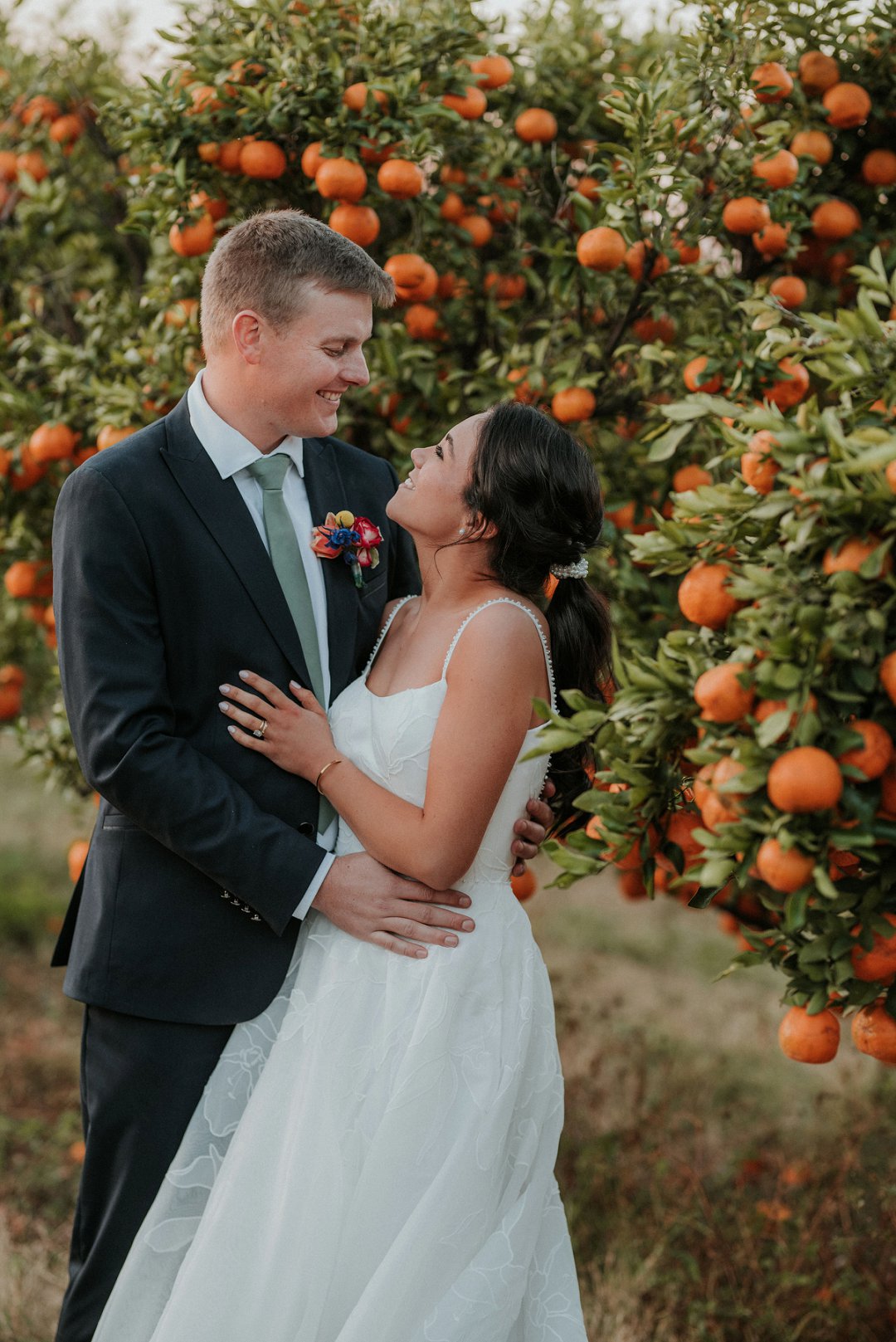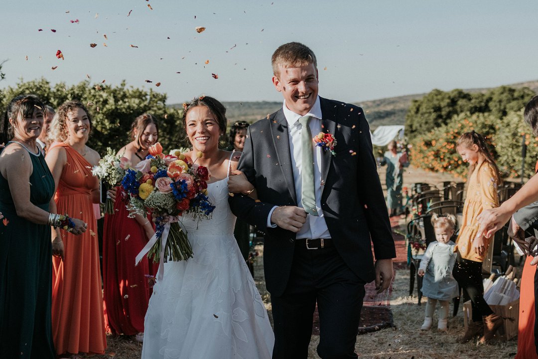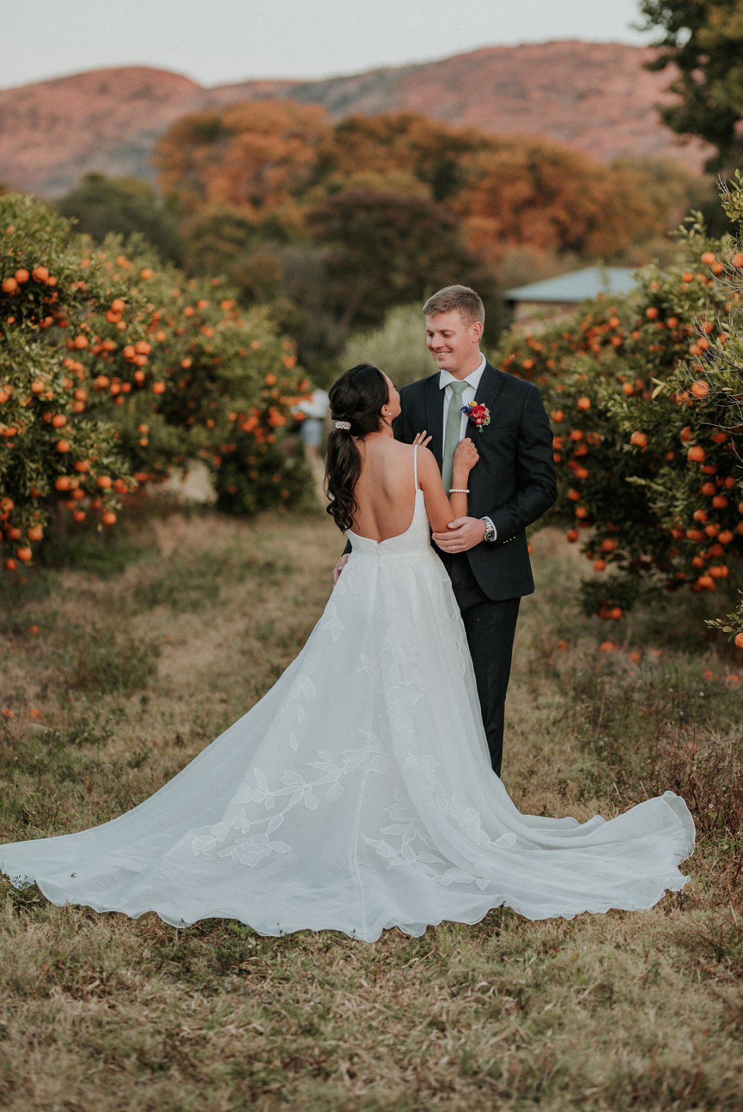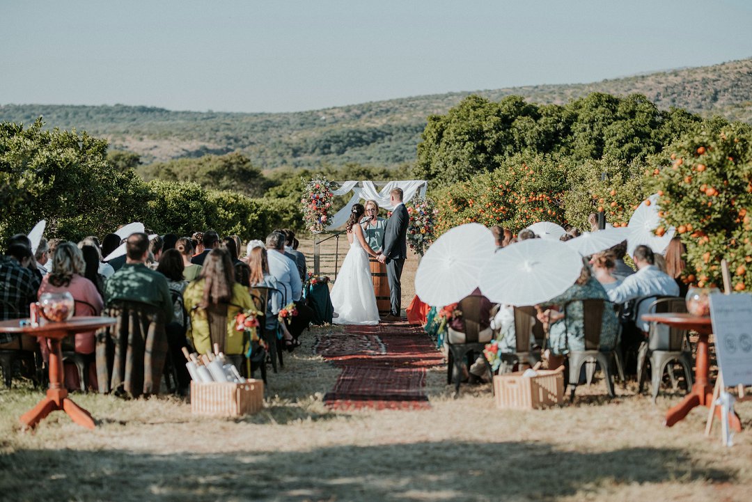 Ons het die dag eenvoudig, eg en soos ons gehou. Tussen die sitrusbome in die boord, met ons naastes naby, het ons getrou. Tydens die canapés kon gaste gemaklik onder sambrele sit, die oomblik geniet en lekker kuier.