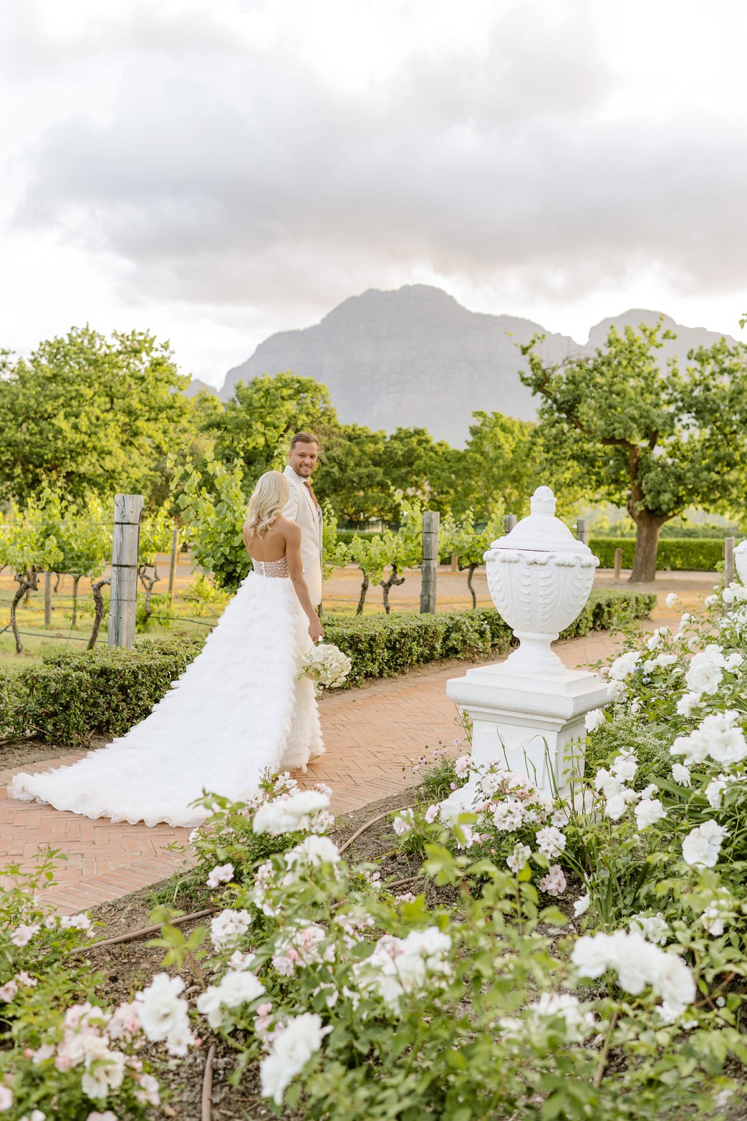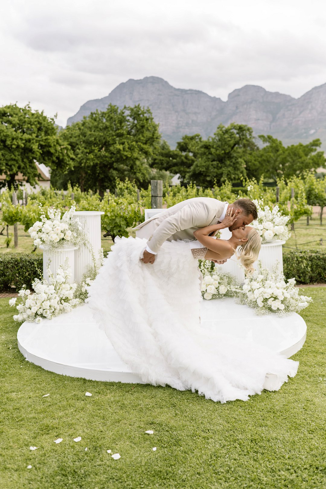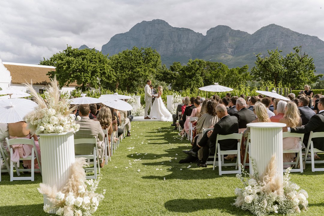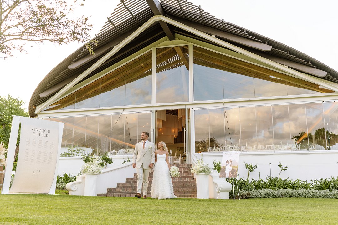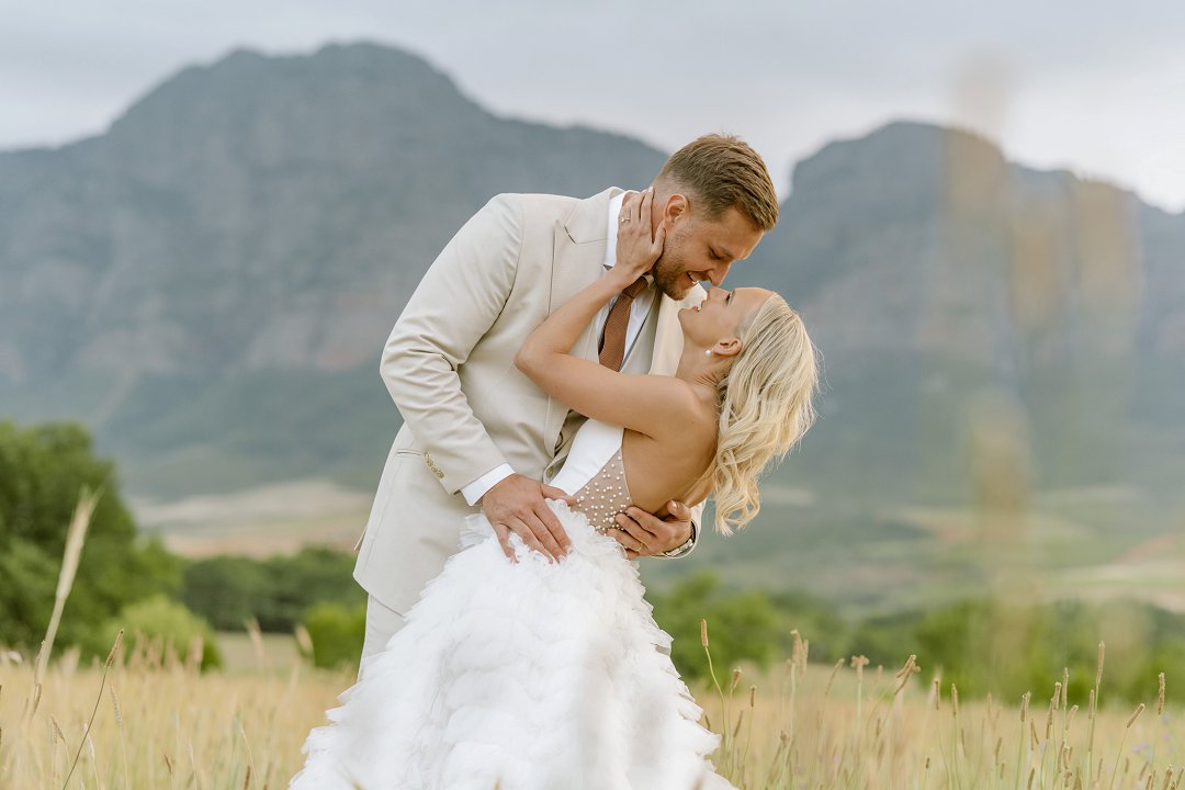 Ons het op 25 Oktober 2025 by Vrede en Lust in die Kaapse wynlande getrou – twee skoolliefdes wat mekaar steeds met dieselfde opgewondenheid en diepe liefde kies. Ons troudag was gevul met ’n rustigheid en vreugde wat ek nog nooit tevore ervaar het nie: liefde in oorvloed, dankbaarheid in elke oomblik en ’n gevoel dat alles presies is soos dit moet wees. Met wit blomme en sagte tikkies pampas het die dag ’n romantiese, sagte atmosfeer geskep, en my trourok se valle het pragtig daarby aangesluit en die hele gevoel van dromerige elegansie voltooi. Dit was nie net ’n troue nie, maar die begin van ons vir altyd – ’n dag wat vir altyd in my hart sal bly.