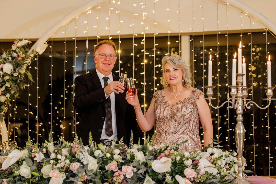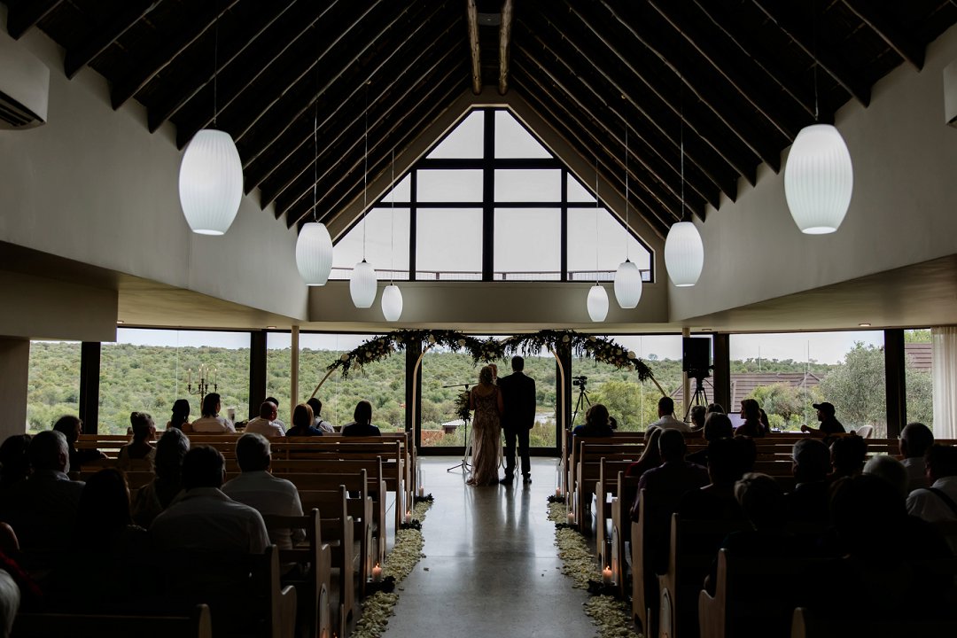 Ons het vroeg in Januarie 2025 Bona Bona Game Lodge besoek en op pad na die restaurant, toevallig die bordjie gesien wat na die kapel lei. Ons het gaan kyk en sowaar die sleutel in die deur gekry. Ons het oopgesluit en ek was bekoor – dit was die mooiste kerkie wat ek nog ooit gesien het. Ons was nuuskierig en opgewonde en in vervoering toe ons die onthaalsaal sien. Alles was perfek! Ek het geweet dat hierdie die perfekte venue is vir ‘n mooi en stylvolle troue. Deon het gevra of ek daar wil trou, ek het glad nie geaarsel nie: “Ja my Skat, hierdie venue is perfek vir ons! Meer as wat ek ooit voor kon vra!” Ons het dieselfde dag ons datum gekies, net 5 was nog beskikbaar vir 2025.