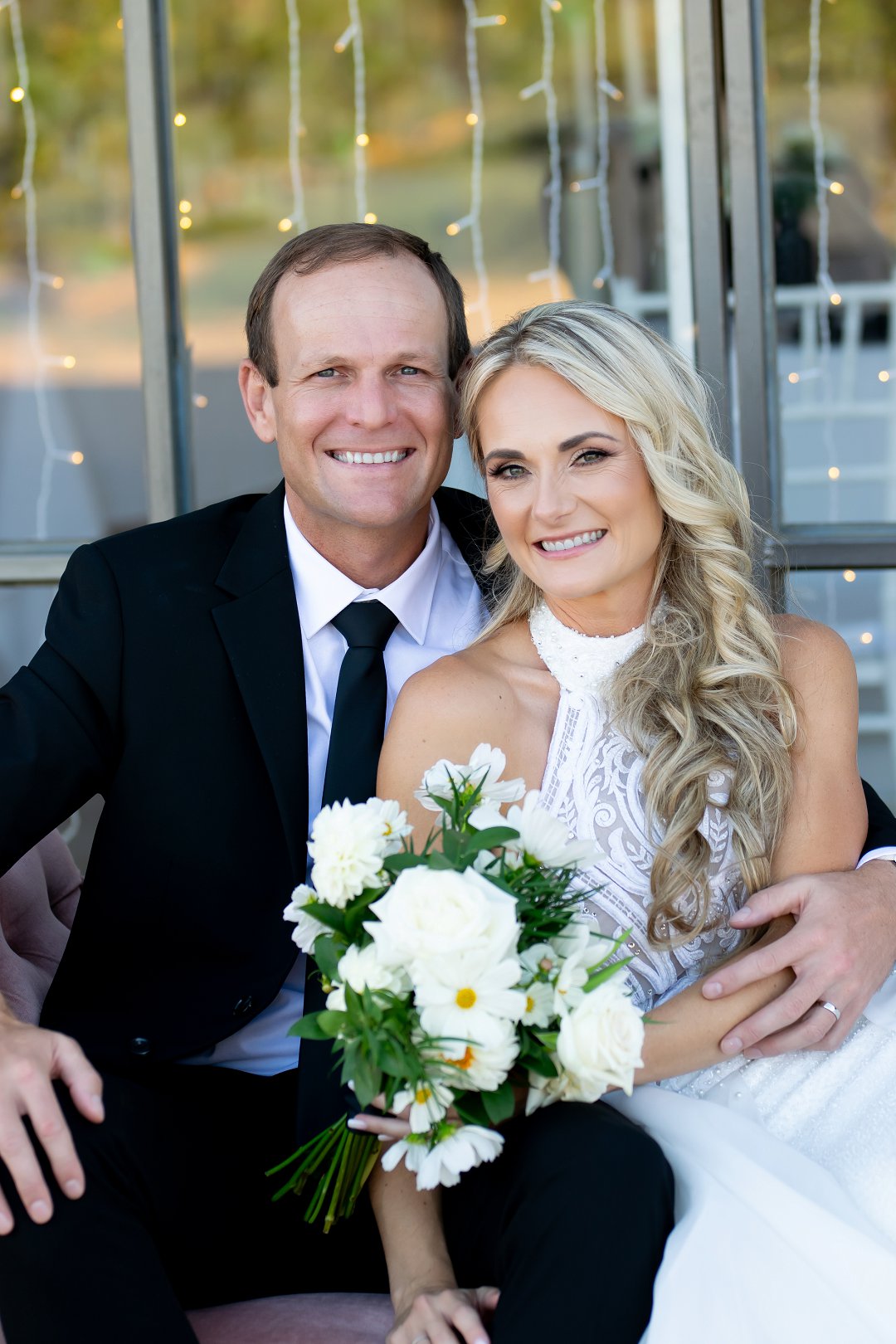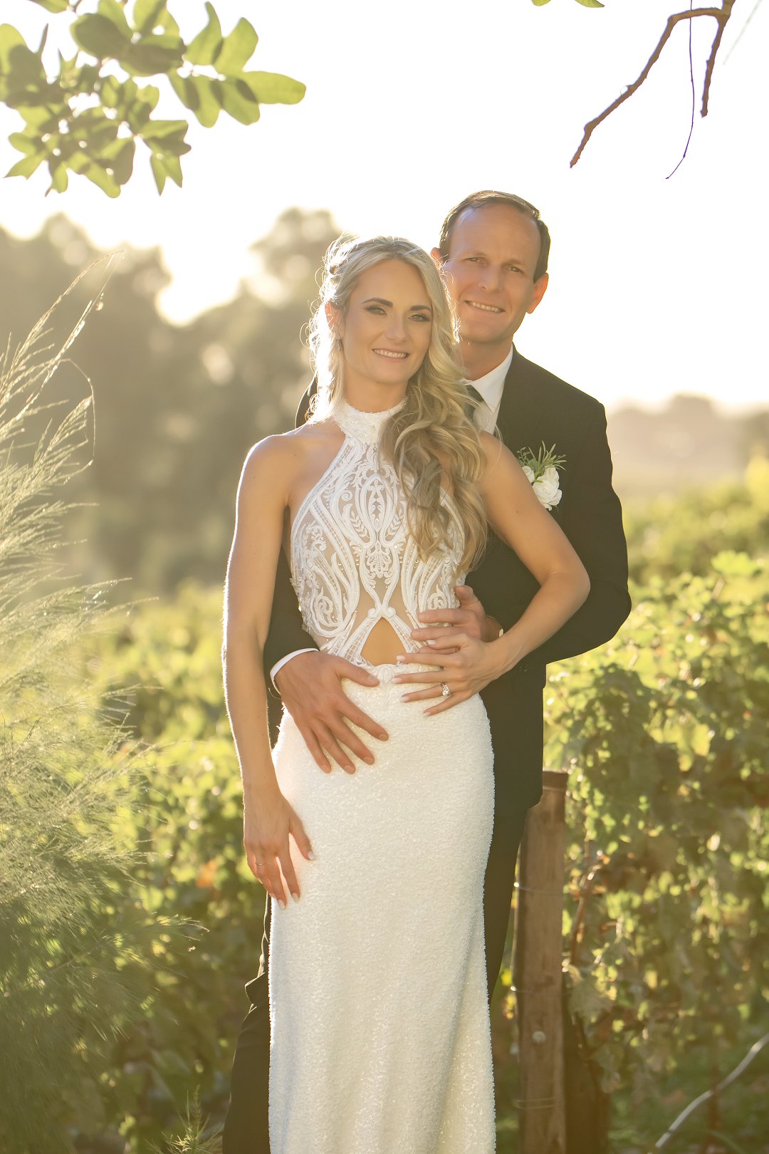 Ons wou ‘n venue hê wat warm is, klein genoeg sodat ons 60 gaste nie verlore sal raak nie. Ek het gesoek na mooi landskap, iets anders (die woud gedeelte waar ons getroud is). Die buite canape area was eg Toskaans. Die saal het ‘n groot venster agter die bruidstafel gehad wat op die wingerde uitgekyk het. Prentjiemooi!