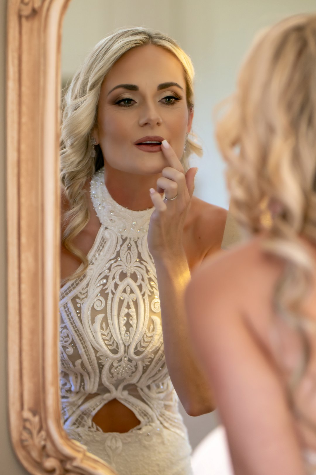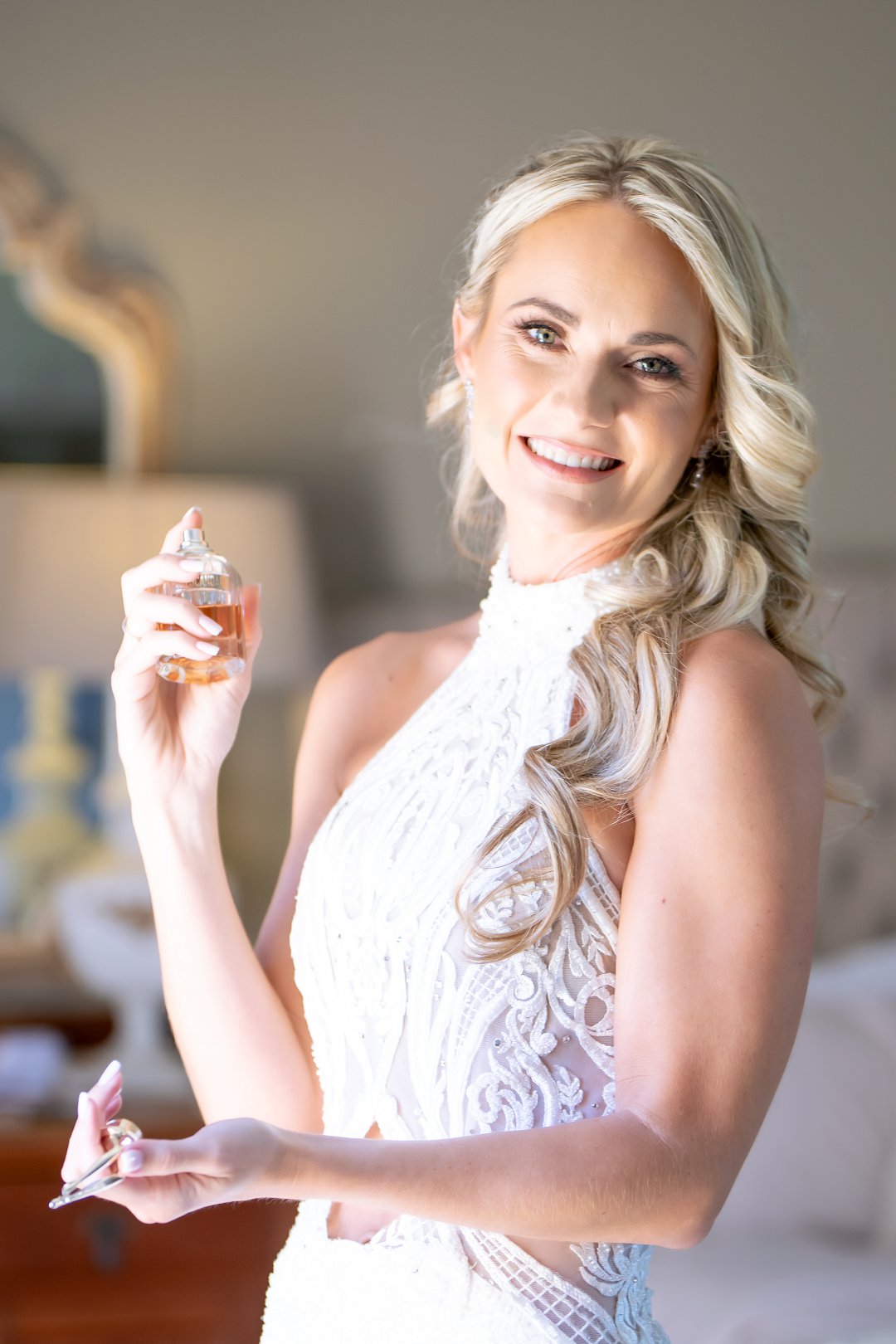 Ek wou super graag ‘n halternek rok dra. Dit was nie maklik om te kry nie. Ek het so semi op ‘n ander rok besluit toe ek een aand op Binnelanders sien Tracy trou in my droomrok. Ek het die ontwerper se naam neergeskryf toe hul al die name laat rol aan die einde van die episode en haar gekontak om te hoor of ek die rok kan huur. ‘n Week later vlieg ek Johannesburg toe om te gaan pas. Soos ‘n handskoen. En een week voor die troue koerier sy die rok vir my. Soos ‘n droom wat waar word.