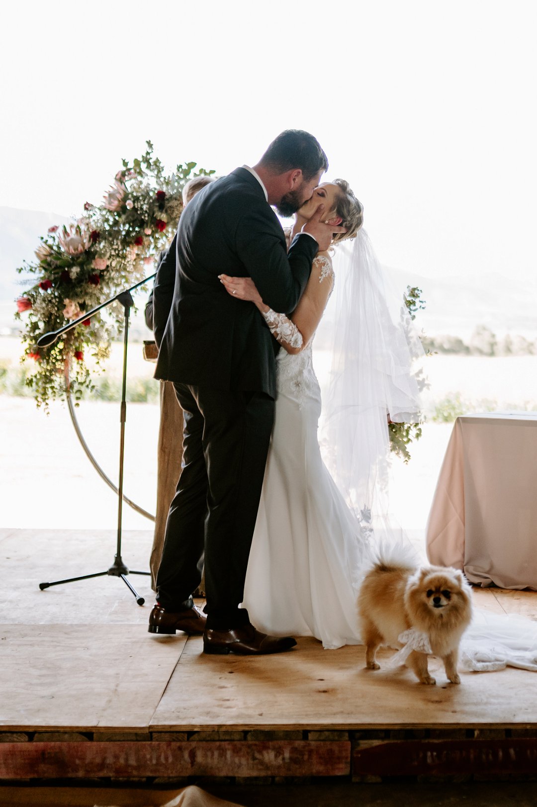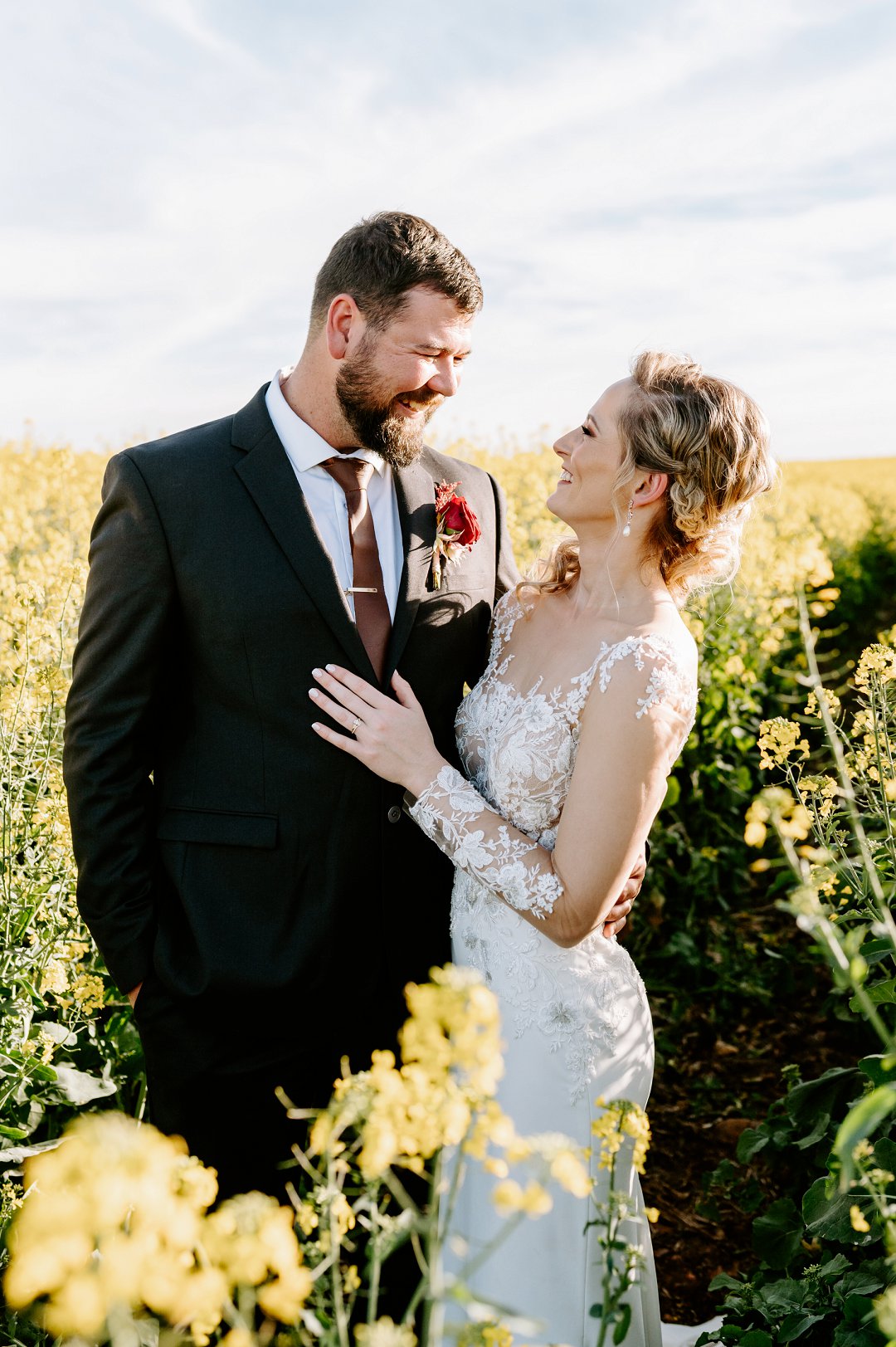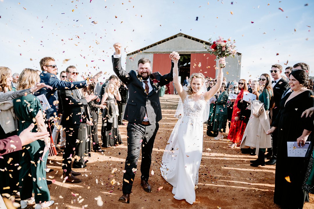 Die seremonie het plaasgevind in ’n ou skuur met groot rooi oopskuif deure, omring deur ’n see van goudgeel Canola. Niks fancy nie, net eenvoudig, maar so uniek met ‘n WOW faktor.