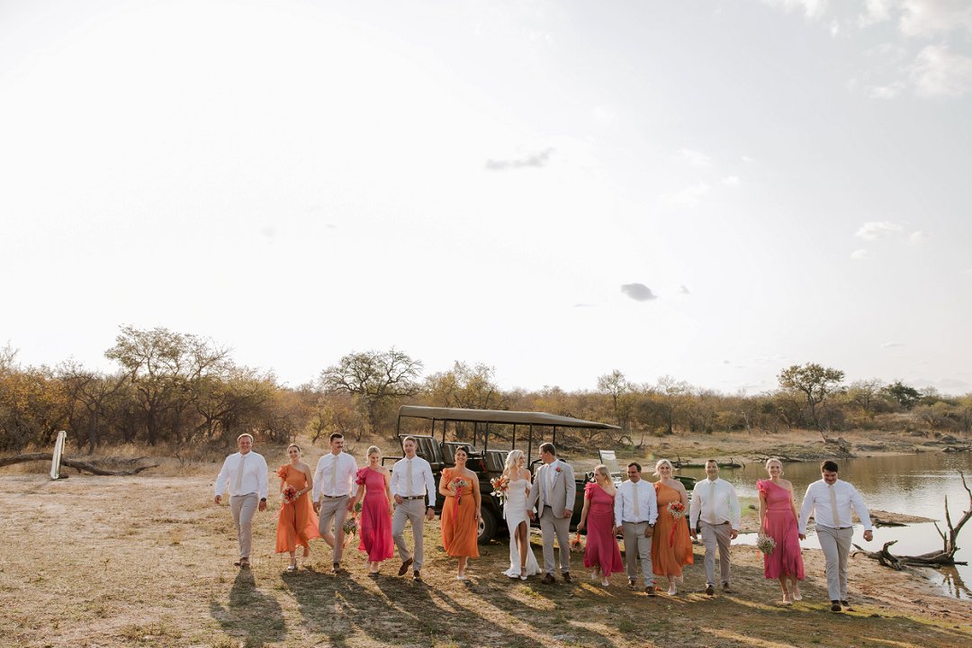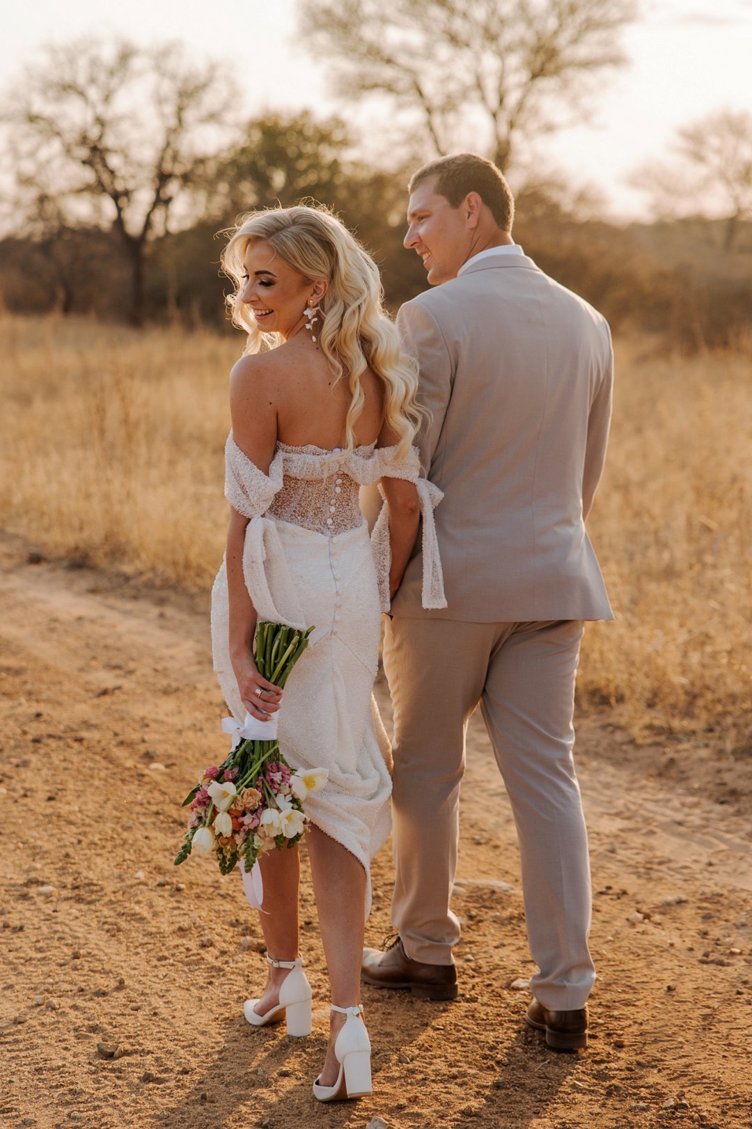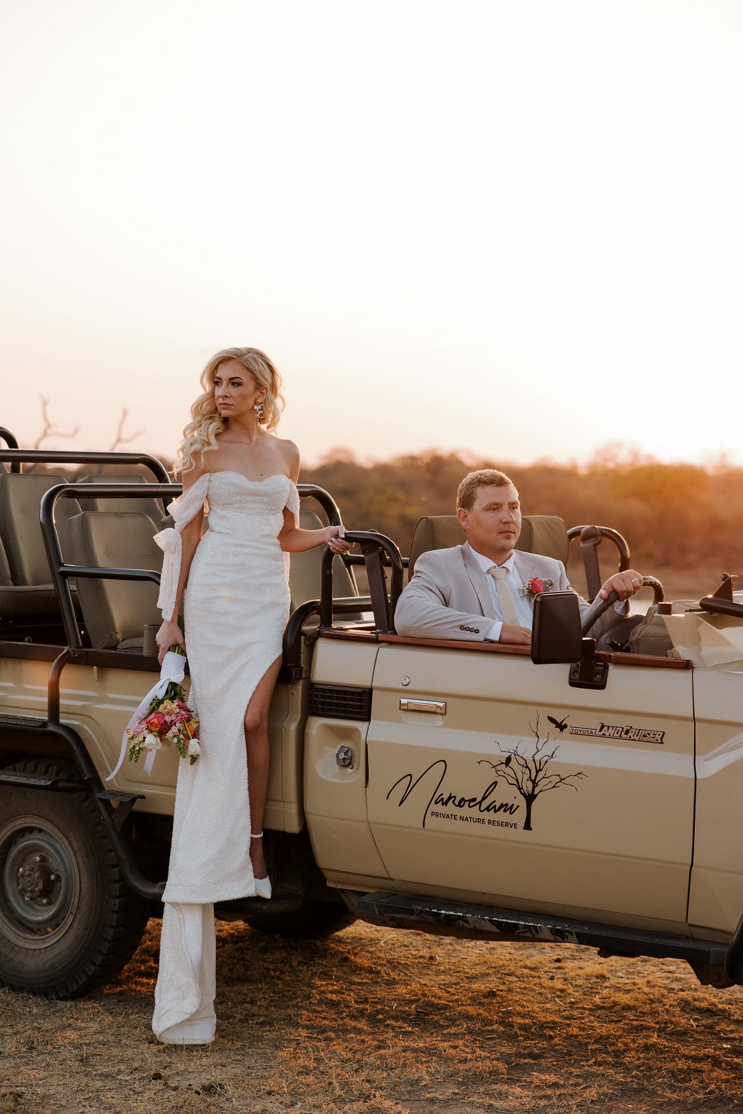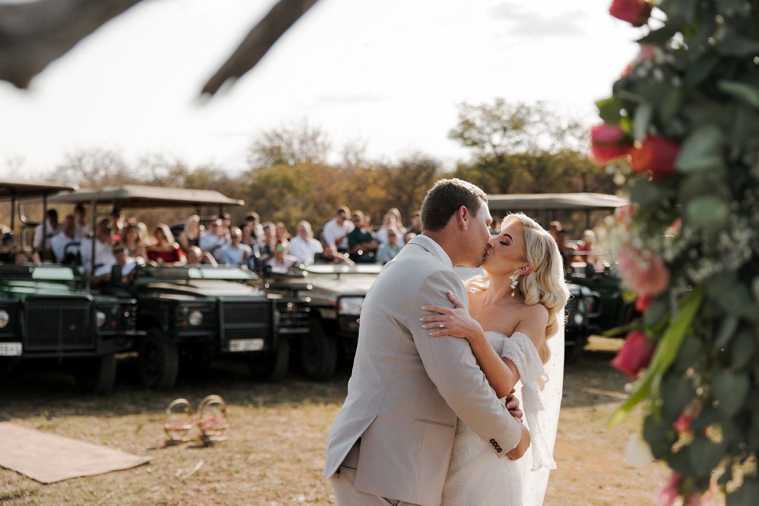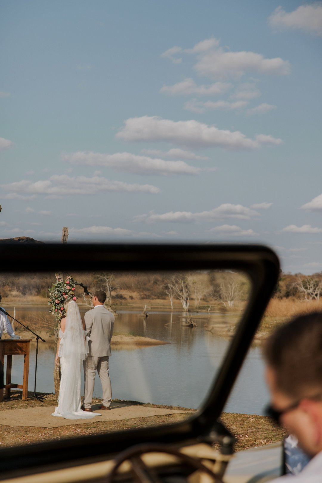 Omdat Hennie daarvan hou om dinge ‘anders’ te doen, het die eienaar van die venue voorgestel dat ons die tradisionele stoele verruil vir “gameviewers”. Ons gaste is met die voertuie na die seremonie vervoer en het langs mekaar geparkeer met ʼn uitsig oor die dam en Hoedspruit se asemrowende berge as agtergrond. Dit was presies hoe ons dit voorsien het—buite die gewoon en onvergeetlik.