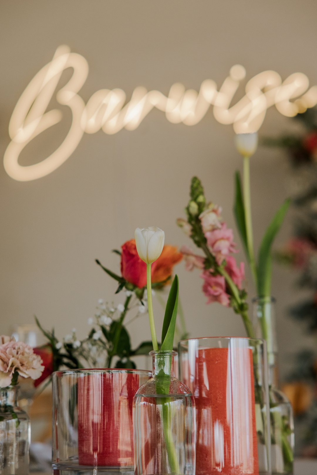 My liefde vir kleur het in die vaal bosveld gestraal met ʼn kleurskema van pienk en oranje. Die blomme—ʼn kombinasie van rose, tulpe, leeubekkies, angeliere en ranonkels—was ʼn ware fees vir die oog. My droomrok, wat ek nêrens in ʼn winkel kon vind nie, is deur Lynmarie in ʼn werklikheid omskep. Sy het my wildste drome oortref en die prentjie in my kop vervolmaak.