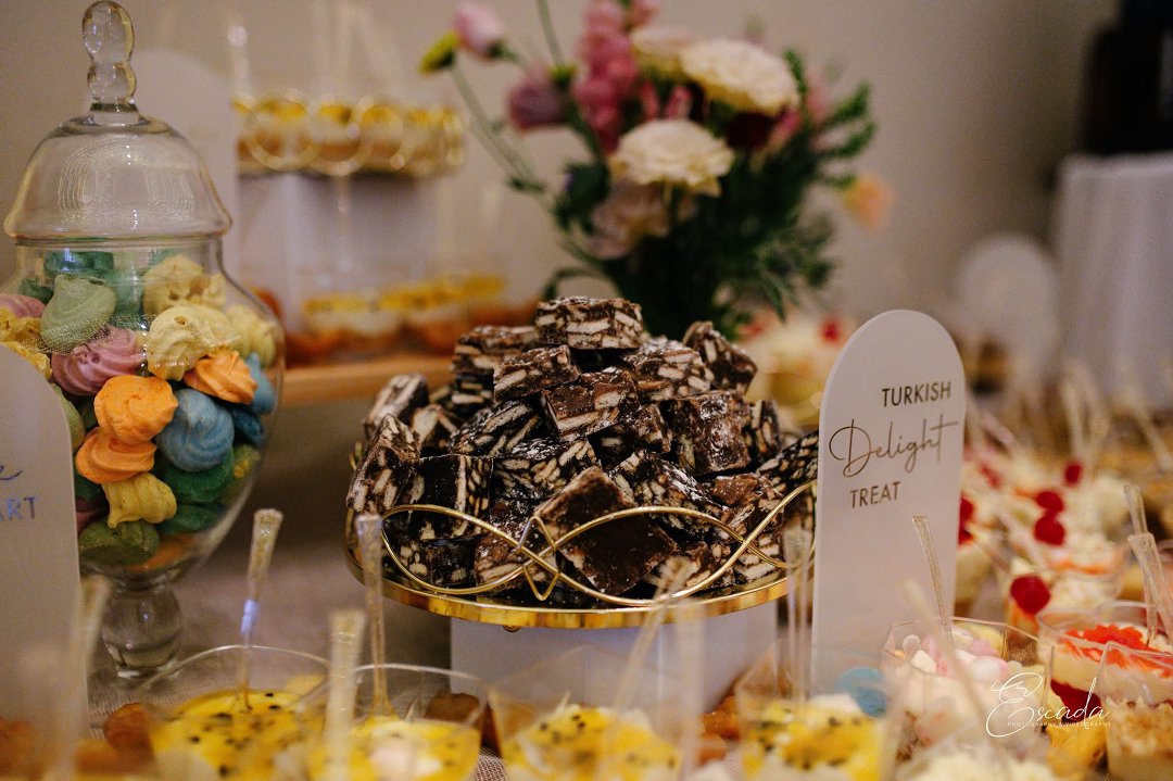 Die sagte stone kleur het die blomme nog meer laat uitstaan. Die soettafel was elke soettand se droom en het gekreun van al die lekkerte en room.