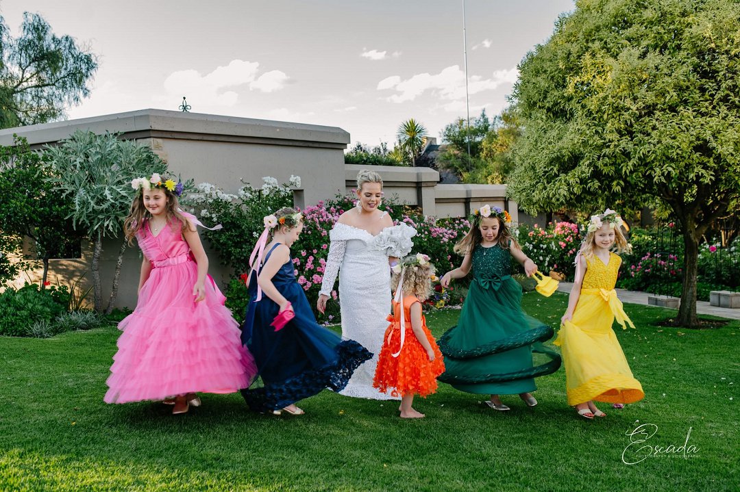 Die eerste keer toe ek met Ulrich van Bowtie gaan gesels het het ek geweet hy gaan elke droom van my waar maak. Hy het sonder oordeel nie een van my idee’s probeer afskiet nie en het my letterlik vryheid gegee om te speel met kleur. Van die blommemeisies in hulle helder rokkies tot skoene en blomme wat elke strooimeisie op hulle eie manier laat uitstaan.