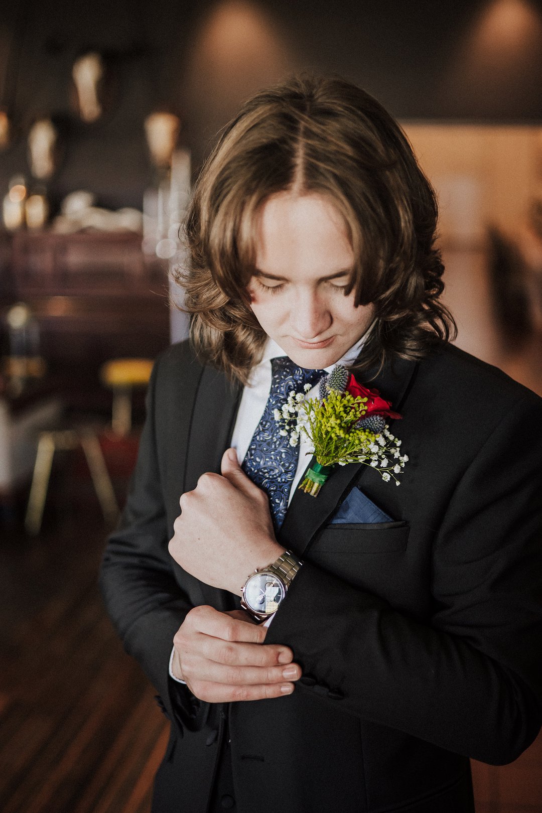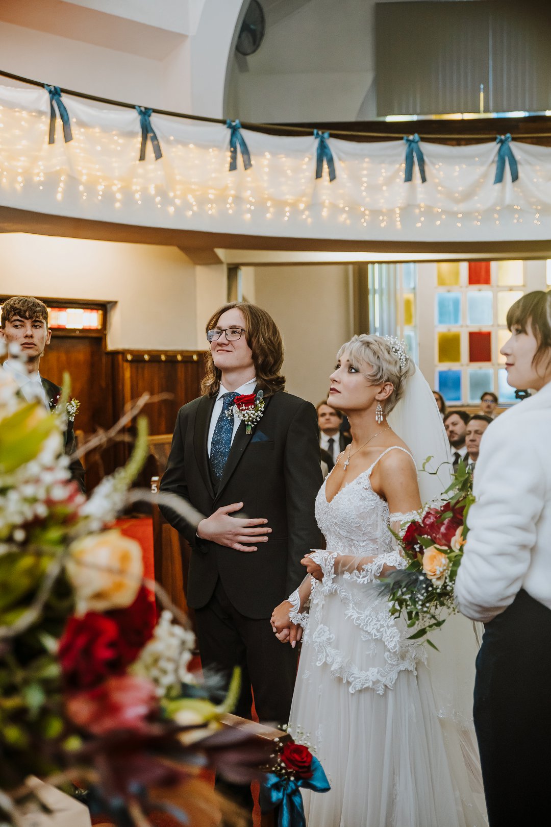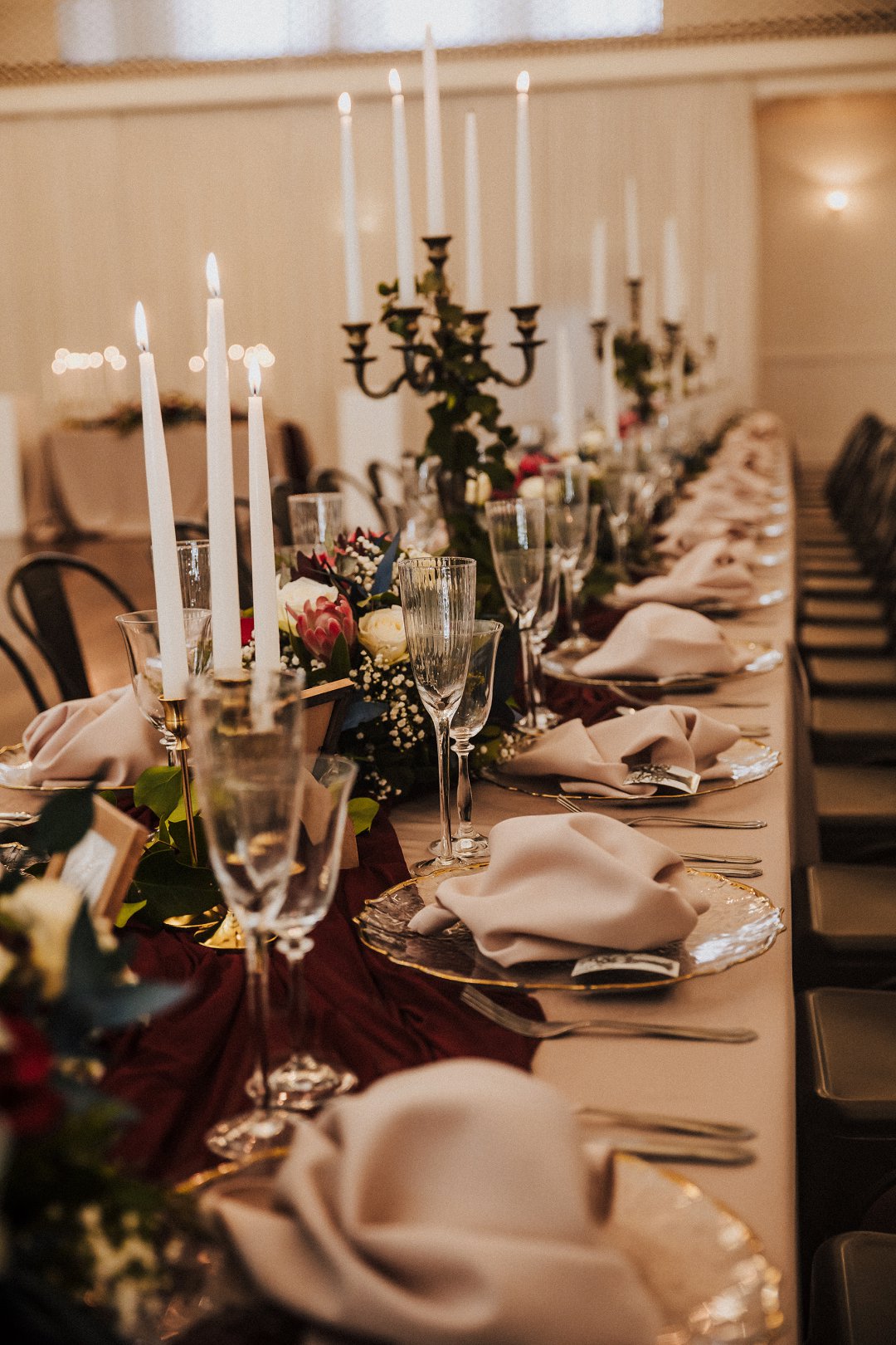 Ons troue was waarlik ‘n spesiale ervaring wat ons uniekheid en liefde as ‘n paartjie ten toon gestel het. Ons het in die hartjie van winter in die Stad van Rose ons beloftes aan mekaar afgelê by NG Gemeente Noordhoek, die einste kerk waar die bruid se ouers vyf-en-twintig jaar tevore ook die register geteken het. Vir die paartjie wat beide in die kunste betrokke is, was klassieke estetika en tradisie met gemak baie belangrik. Die troue was ‘n geleentheid waar familie en vriende saamgespan het om die dekor en gepaste atmosfeer te skep. Die blomme is deur ‘tannie Annetjie’ gerangskik. Haar blomme het nog altyd gepruik voor in die kerk en was beeldskoon gekroon met ons nasionale blom. Die skakerings van rooi, sagte pienk en vlootblou is verder vir die onthaal bymekaar gesit deur die bruid se ma, twee sussies en ‘n geliefde familie vriendin.