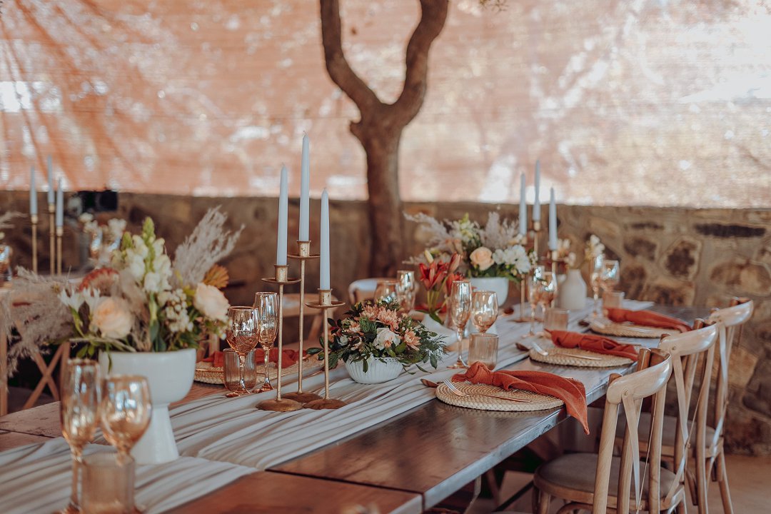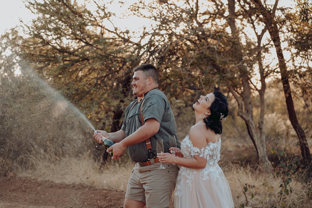 VellieFourie: Liefde op God se tyd. Daar word altyd gesê: “Jy gaan nooit iemand op ’n dating app kry nie.” Maar ons storie bewys die teenoorgestelde! In 2023 het Jandré my ’n boodskap op Instagram gestuur – en soos Refentse sing: ek het hom net geblue tick! Maar God se tydsberekening is altyd perfek. In Desember 2023 het ek hom weer raakgesien op die Afrikaanse dating app, Koer. Hierdie keer het ek geantwoord… en toe gebeur daar iets besonders. Ons het ure lank gesels, mekaar leer ken, gelag, gedeel en gegroei. Wat hy nie geweet het nie, is dat een van ons gemeenskaplike vriende agter sy rug vir hom moes “inligting afgee”! Kort daarna het ons op 3 Januarie 2024 mekaar vir die eerste keer in persoon ontmoet – ’n ete by Cowfish en daarna ’n fliek. Die res is geskiedenis. Op 2 Februarie 2024 het hy my gevra om sy meisie te wees, en sonder twyfel het ek “JA!” gesê. Ons het van die begin af geweet: Jesus is die Een wat ons paaie gekruis het. Hy is die fondament van ons verhouding, en Sy seën was duidelik sigbaar van dag een af. Op 21 Desember 2024 het Jandré weer op sy knie gegaan – en weer was my antwoord ’n volmondige, trane-in-my-oë “JA!” Ons Troudag: Vellies, Kortbroeke & Wildsplaas-Wonder. Ons het altyd geweet: ons troue moet eg wees. Lekker. Ontspanne. ‘n Fees waar almal tuis kan voel – waar mans kortbroeke dra, almal hulle vellies kan aantrek, en ons saam ’n onvergeetlike naweek kan beleef. Ons naweek troue het op ’n pragtige wildsplaas plaasgevind. Gaste het reeds vanaf die Vrydag saam met ons begin kuier en op die plaas oornag. Saterdag was die groot dag – vol trane, lag, liefde en ongelooflike herinneringe. Ons was van dag een af so geseënd met almal se bydraes, hulp en gebede. Oor en oor is ons huwelik bevestig deur ’n vers wat vir ons baie beteken: Prediker 4:12 – “’n Driedubbele tou breek nie maklik nie.” Sonder dat mense geweet het dit is óns vers, het hulle dit aan ons gegee op geskenkbriefies, in toesprake, en selfs tydens die heildronk.