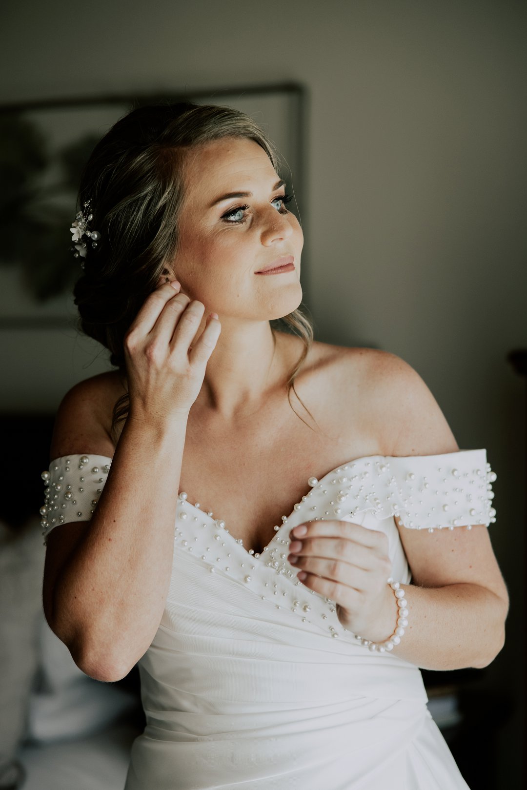 My rok was alles wat ek ooit gedroom het — sag en tydloos. Die pêrels het oor die bors en moue gedans, asof hulle self die lig wou vasvang. Ek het ’n eenvoudige pêrel sluier gedra, net genoeg om die lig te vang wanneer ek geloop het.