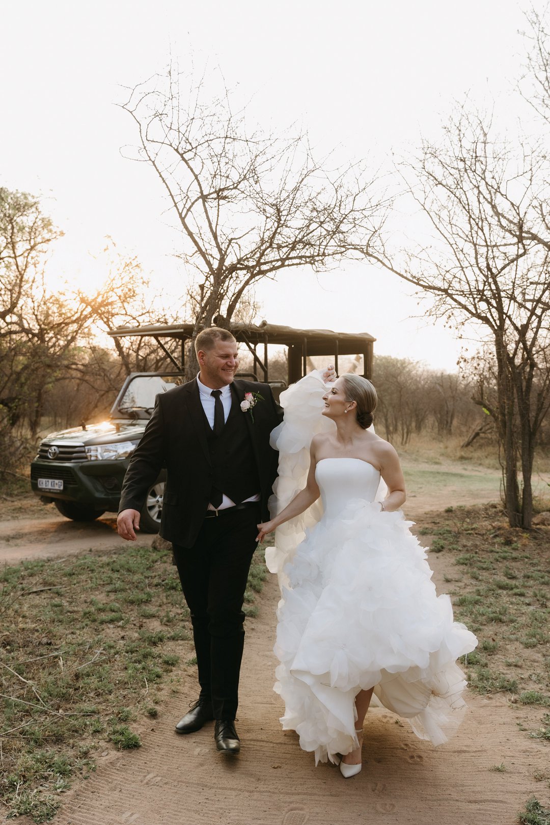 Na byna ‘n jaar se beplanning, onder die sagte Afrika-hemel by Tshikwalo Game Lodge, omring deur kleurvolle blomme en ons kosbaarste geliefdes, het ek stadig in die paadjie afgestap, saam my ma en pa, op ’n lied wat Riana Nel spesiaal vir ons geskryf het. Die oomblik toe ek Franco sien, het my hart geweet — ek is presies waar ek moet wees.