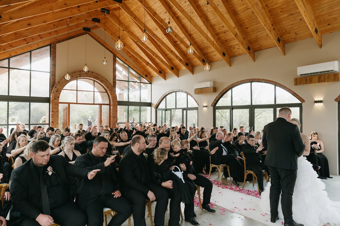 Ons het vir altyd belowe, tussen trane en glimlagte, vasgevang in die liefde van almal wat vir ons die wêreld beteken. Die stylvolle see van swart uitrustings het die oomblik tydloos en elegant gemaak.