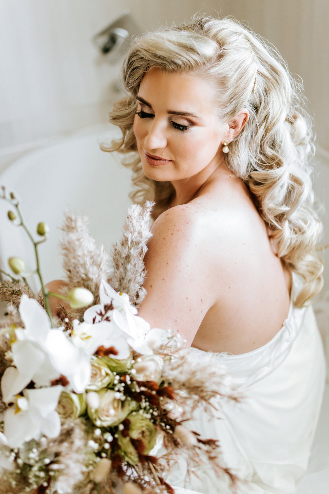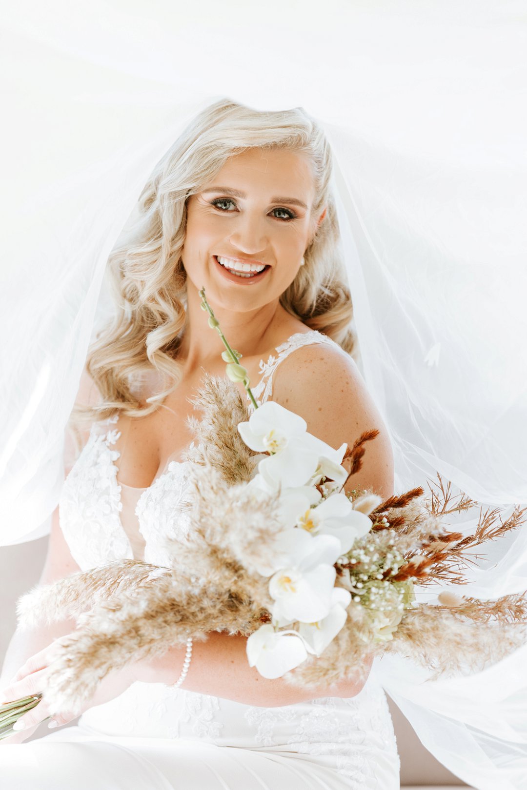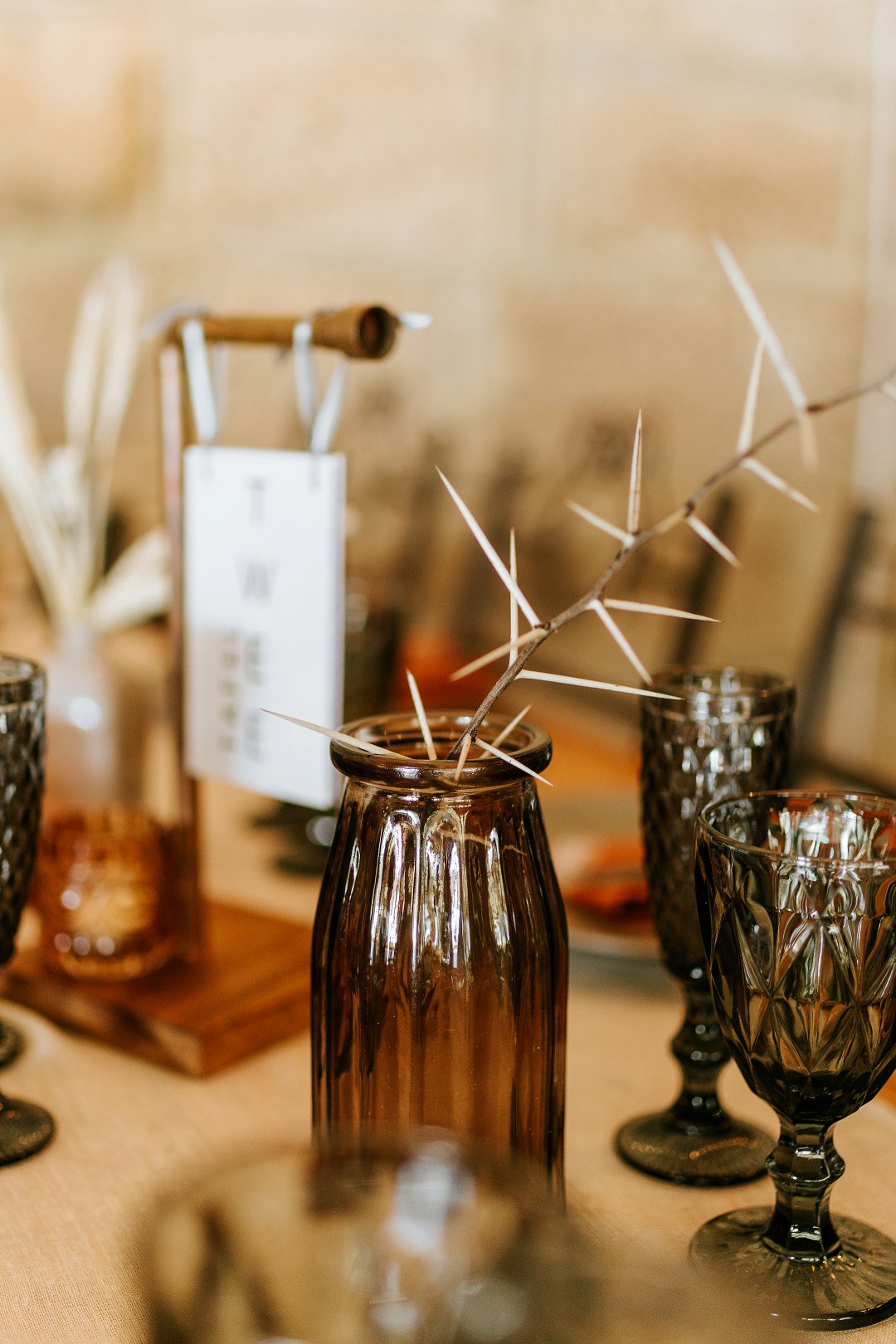 Ek, Lanél, is defnitief ‘n DIY persoon en ons het al die dekor by die troue self gemaak en voorberei. Ons het vandat ons verloof geraak het begin kyk vir droë takkies, veldgrasse en natuurlik pampas en palmboom-takke. Ons het saamgewerk as ‘n span om ons droom troue te beplan.