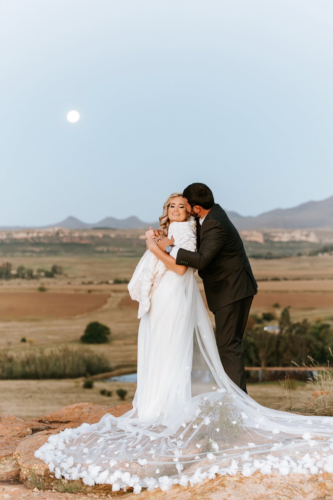 Bella Montagna lê baie na ons harte, Johnré se ouma het groot geword op die pragtige plaas tussen Bethlehem en Fouriesburg in die Oos-Vrystaat. Die ou plaashuis is omskep in ‘n kerk en die melkstal is waar ons partytjie gehou het. Dit is absoluut beeldskoon met die prentjiemooi berge rondom ons.