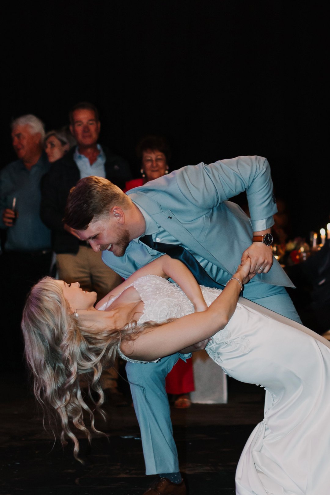 Dit was uit en uit die beste dag van my lewe sover! Elke detailtjie was vir my net so, so perfek! Die mooi 125 jaar oue klipkerk waarin ons getrou het, my handsome man wat nie sy trane aan die kansel kon keer nie, my cathedral style veil met my satyn- en kantrok; ons ringe; die konfetti; die troukar – ’n turkooise 1948 De Soto; die groen velde op die plaas; ons troufoto’s; die gees en opwinding van ons gaste toe ons in ons onthaal-skuur-saal instap en almal hulle servette swaai; ons sjampanje-toring; ons eerste dans; ons pa-en-dogter-dans & ma-en-seun-dans; die Delft-dekor; die vrolike blomme; my nuwe van in groot wit liggieletters voor ons hooftafel. Die sparklers; die dak met wit draping en die string lights; die mood lights van sonsakkleure; die sokkie en losdans; die musiek; die gees van die feesvieringe wat tot 03:00 aangehou het.