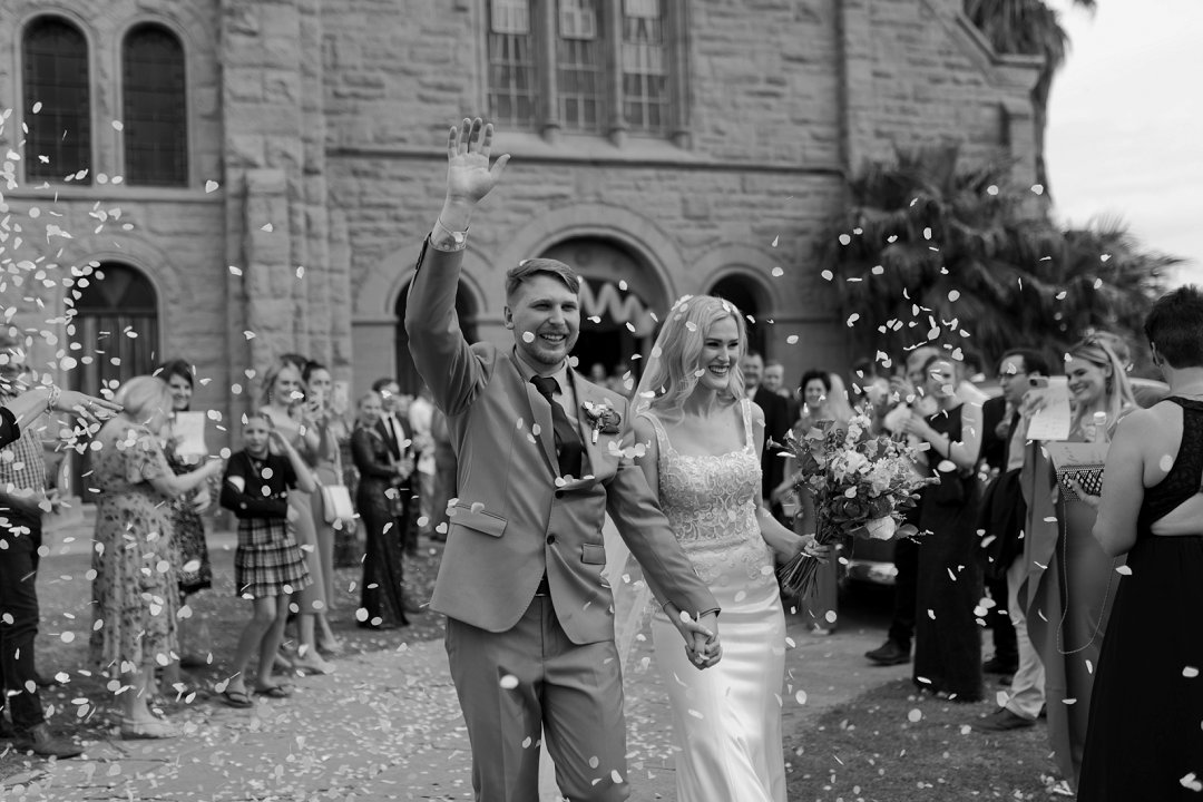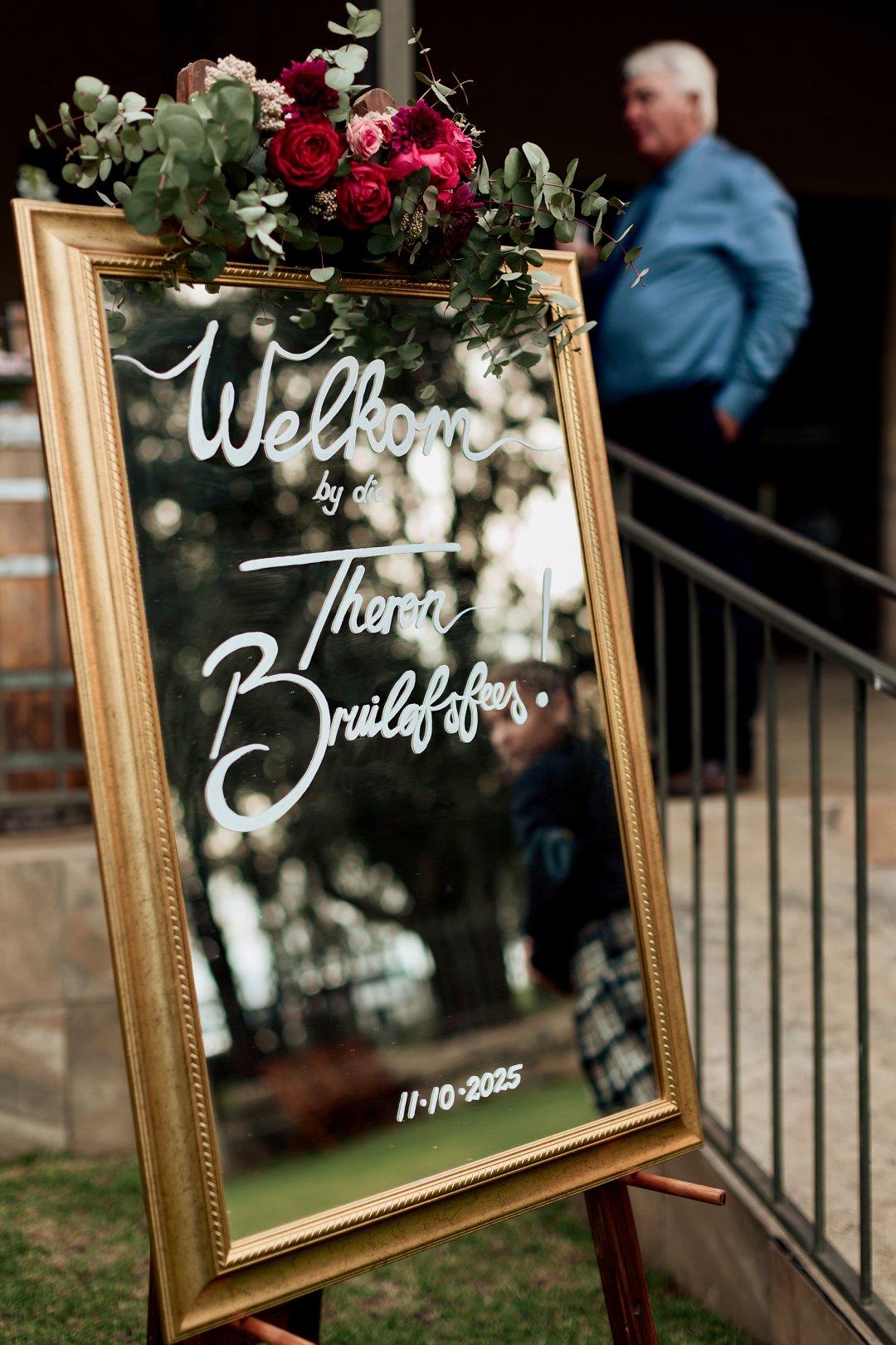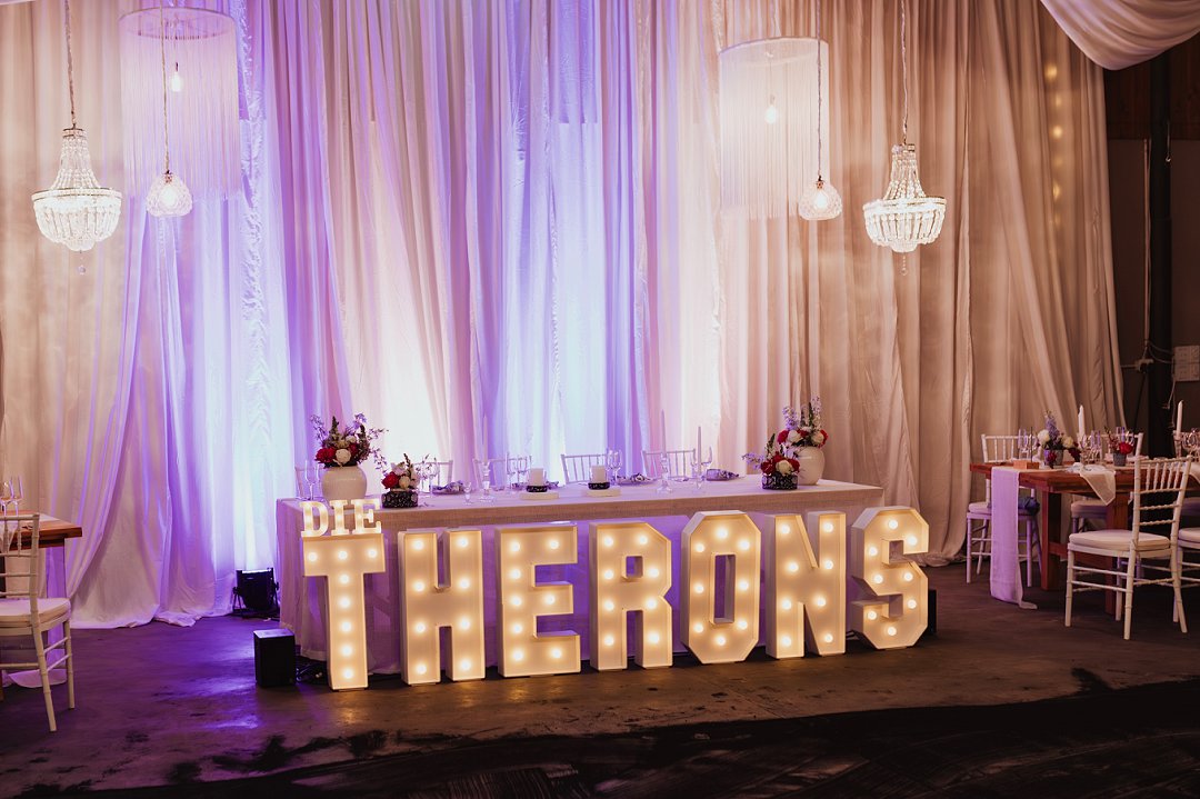 Dit was uit en uit die beste dag van my lewe sover! Elke detailtjie was vir my net so, so perfek! Die mooi 125 jaar oue klipkerk waarin ons getrou het, my handsome man wat nie sy trane aan die kansel kon keer nie, my cathedral style veil met my satyn- en kantrok; ons ringe; die konfetti; die troukar – ’n turkooise 1948 De Soto; die groen velde op die plaas; ons troufoto’s; die gees en opwinding van ons gaste toe ons in ons onthaal-skuur-saal instap en almal hulle servette swaai; ons sjampanje-toring; ons eerste dans; ons pa-en-dogter-dans & ma-en-seun-dans; die Delft-dekor; die vrolike blomme; my nuwe van in groot wit liggieletters voor ons hooftafel. Die sparklers; die dak met wit draping en die string lights; die mood lights van sonsakkleure; die sokkie en losdans; die musiek; die gees van die feesvieringe wat tot 03:00 aangehou het.