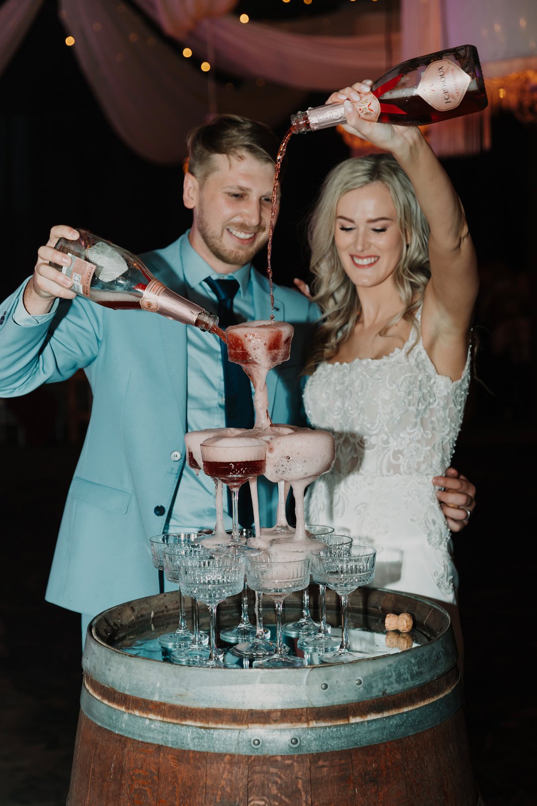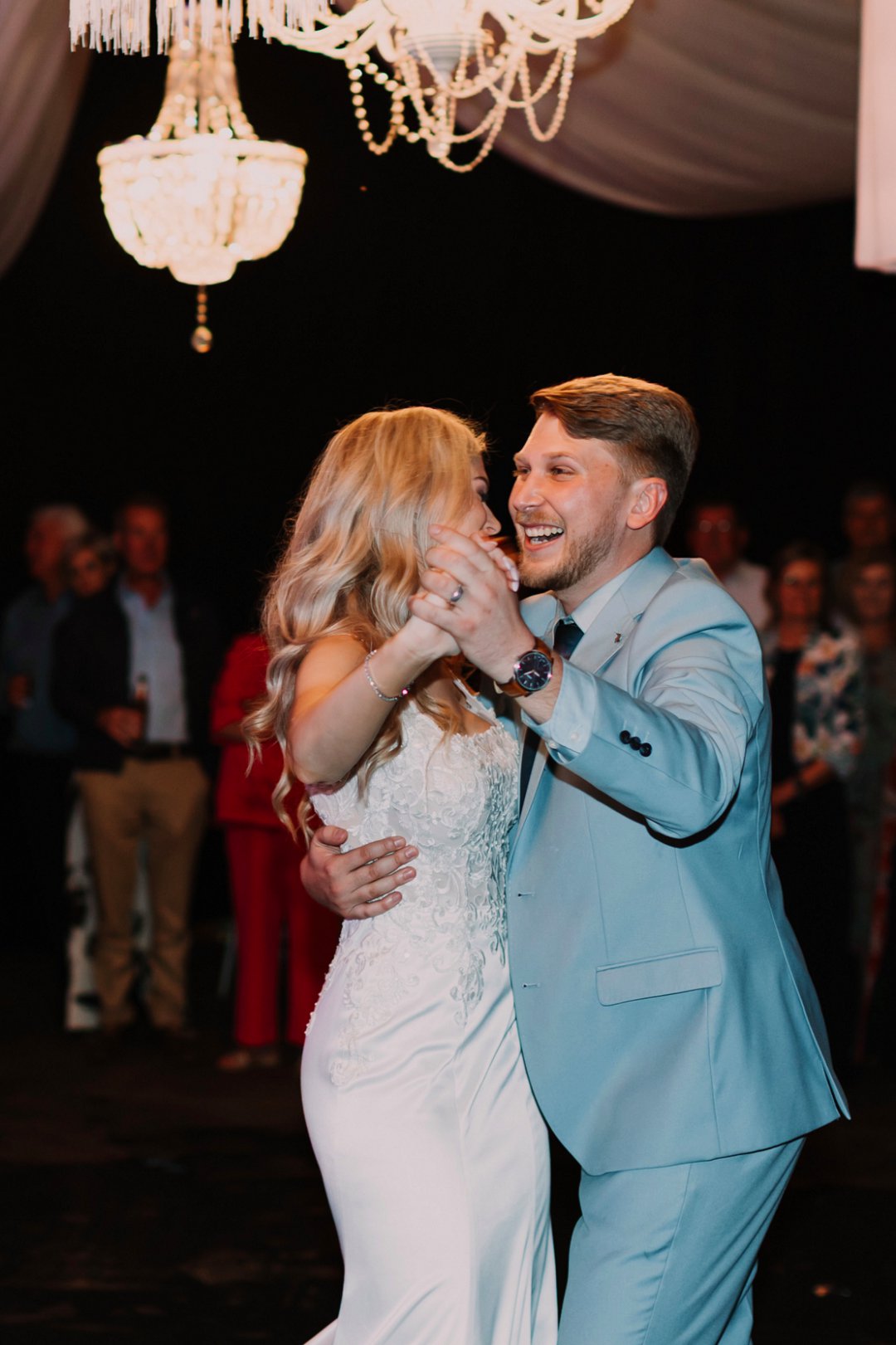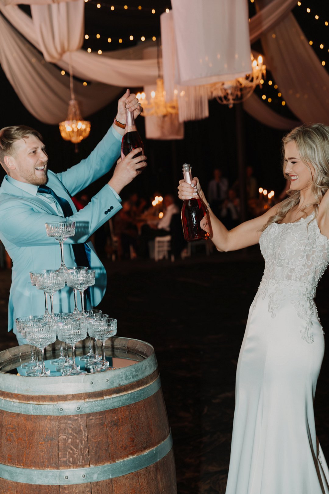 Dit was uit en uit die beste dag van my lewe sover! Elke detailtjie was vir my net so, so perfek! Die mooi 125 jaar oue klipkerk waarin ons getrou het, my handsome man wat nie sy trane aan die kansel kon keer nie, my cathedral style veil met my satyn- en kantrok; ons ringe; die konfetti; die troukar – ’n turkooise 1948 De Soto; die groen velde op die plaas; ons troufoto’s; die gees en opwinding van ons gaste toe ons in ons onthaal-skuur-saal instap en almal hulle servette swaai; ons sjampanje-toring; ons eerste dans; ons pa-en-dogter-dans & ma-en-seun-dans; die Delft-dekor; die vrolike blomme; my nuwe van in groot wit liggieletters voor ons hooftafel. Die sparklers; die dak met wit draping en die string lights; die mood lights van sonsakkleure; die sokkie en losdans; die musiek; die gees van die feesvieringe wat tot 03:00 aangehou het.