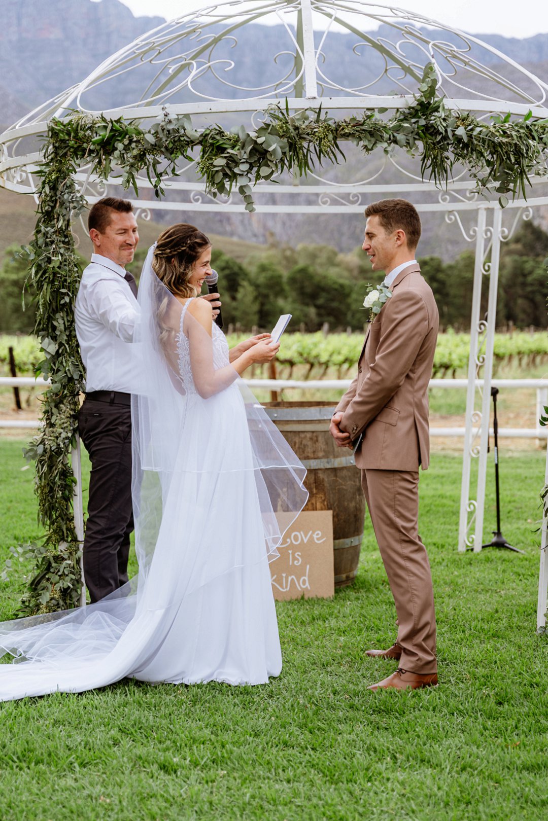 My man het asemrowend gelyk in sy pragtige troupak, wat sy elegansie en opgewondenheid vir ons spesiale dag beklemtoon het. Die oomblik toe hy my vir die eerste keer gesien het, het hy in trane uitgebars, ʼn bewys van die diepte van sy liefde en die emosie van die oomblik.