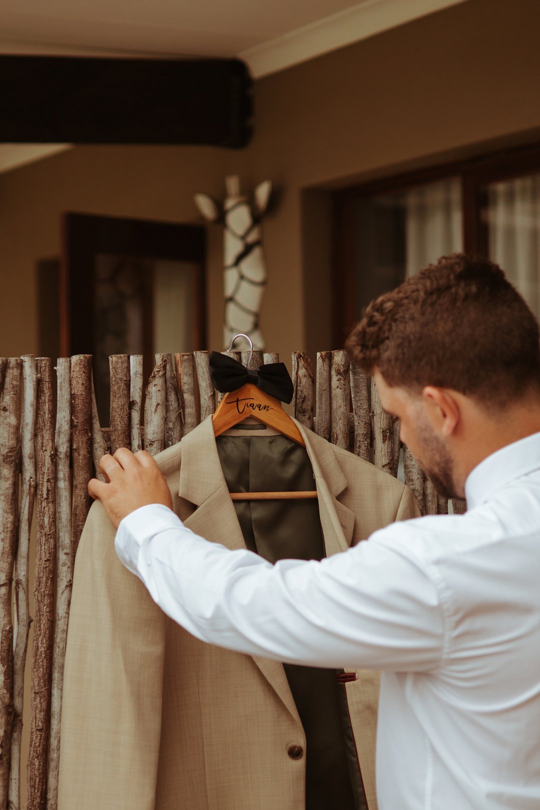 Sy troupak vul dit perfek aan met ’n klassieke, netjiese voorkoms wat selfvertroue en rustigheid uitstraal.