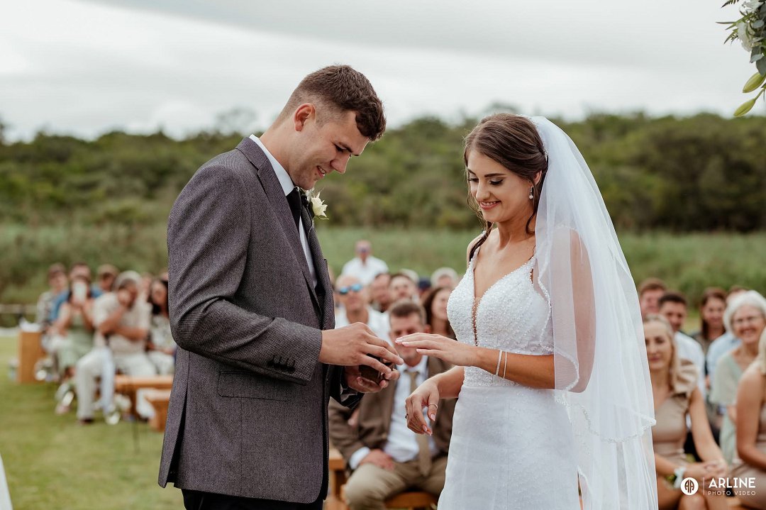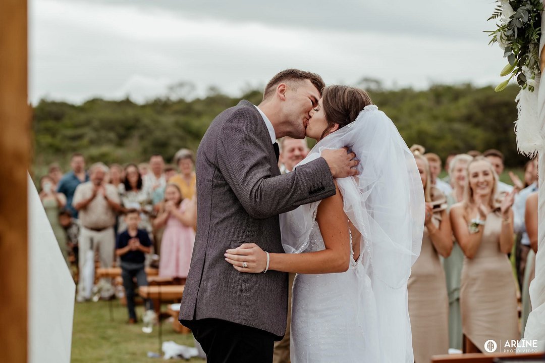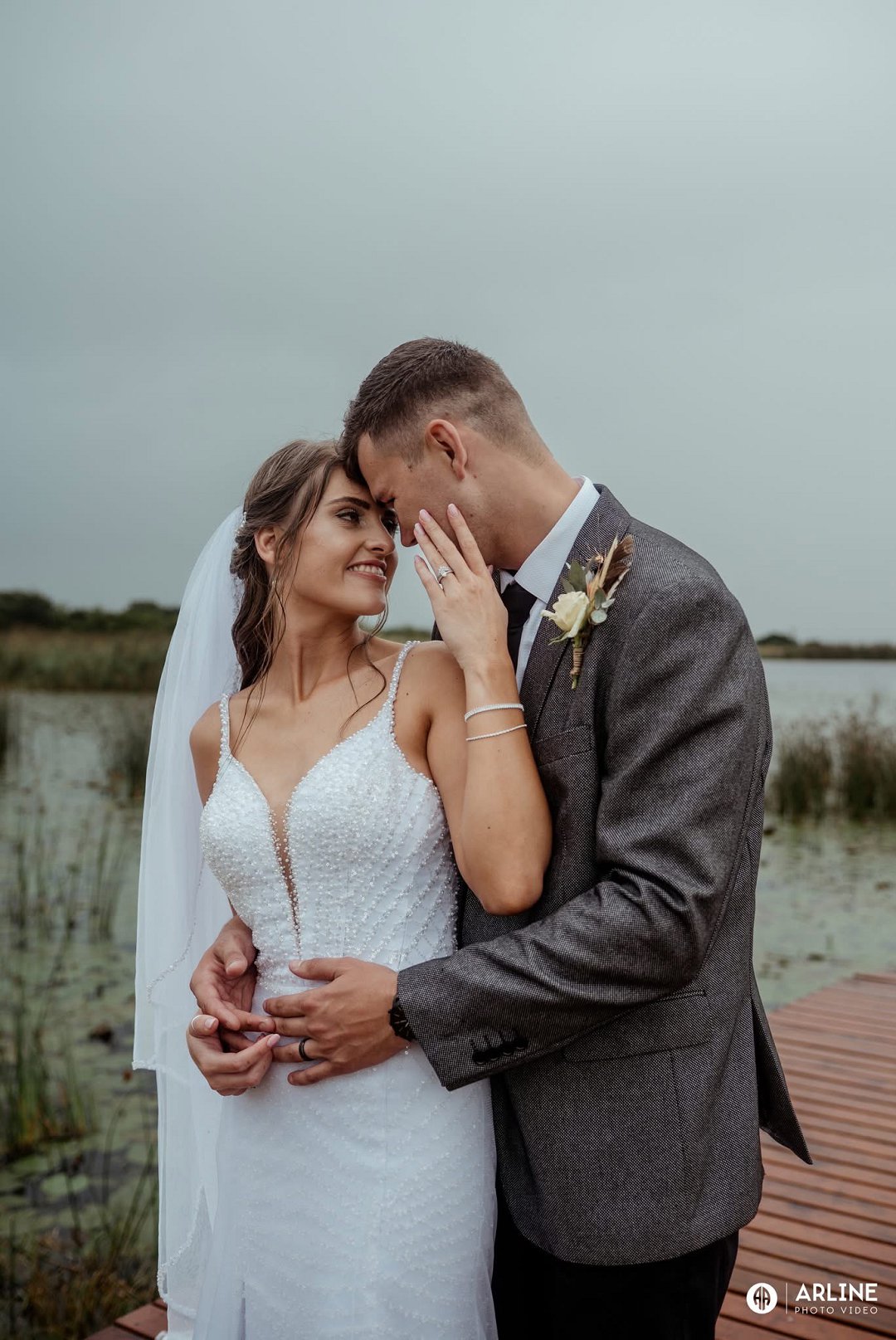 Na ons verlowing was ons so opgewonde en het dadelik begin kyk na venues. Ons het besluit om te trou in n dorp wat vir ons spesiaal is en waar ons ook ontmoet het. Ons harte was dadelik gelukkig toe ons by Dweba Lapa aankom en die mooi plekkie sien. Beide van ons het vrede gekry en het geweet dit is presies wat ons wil he. Ons het n datum vasgemaak en dadelik begin met troubeplanning! Ons het daarop gefokus om die troue uniek aan ons twee te maak en ten spyte daarvan dat die venue die tafels, stoele, eetgerei en decor voorsien, het ons besluit om die res self te doen en te reel – natuurlik met die hulp van die beste familie en vriende. Nadat ons vir 5maande soveel dinge bymekaargemaak het en beplan het, het ons n week voor die troue vertrek na Pongola om die laaste goedjies reg te kry. Ons was in awe toe ons 3 dae voor die troue met die saal begin! Siende dat ons besluit het om alles self te doen, het ons dadelik weggespring die woensdag om die saal uniek aan ons te maak. Toe ons weer kyk was daar so baie vriende en familie wat n hand kom bysit het sonder dat ons daarvoor gevra het. Ons het daar besef dat ons regtig hartsmense in ons lewens het en dat daardie 3 dae soveel beteknis vir ons dra. Ons het hard gewerk en en soveel ondersteuning en liefde ontvang. Almal het net ingespring en begin werk om ons sprokiesdag perfek te maak. Morné se pak het ons al 4 maande voor die trou gaan kry en hy was soos n prins hanteer toe ons gaan aanpas by Sedgars. My trourok het my asem weggeslaan en ek wens ek kan nou steeds elke week my rok aantrek. My rok is gemaak deur Enid Becker, n mode ontwerper wat bly in Schweizer-Reneke en ek het die voorreg om haar my ma te noem. My ma weet vir ek en Morné maak die klein goedjies saak. Op my rok was daar n Bybel vers geskryf met krale en dit het hierdie rok so spesiaal gemaak! Ons het met trane by die saal ingestap en besef dat hierdie werklik ons droom dag is. Elke klein detail by ons troue het die dag so spesiaal gemaak!