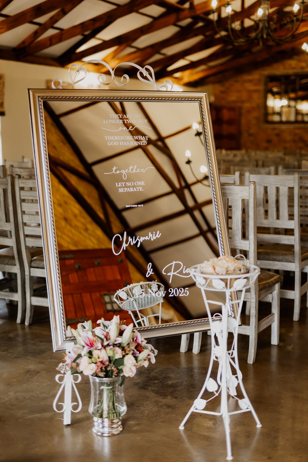 Ons troubeplanning is met groot sorg, liefde en gebed gedoen, met die doel om ’n dag te skep wat ons geloof en verbintenis weerspieël. Elke detail is doelbewus gekies om ’n harmonieuse, elegante en tydlose atmosfeer te vorm.