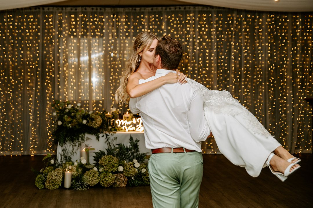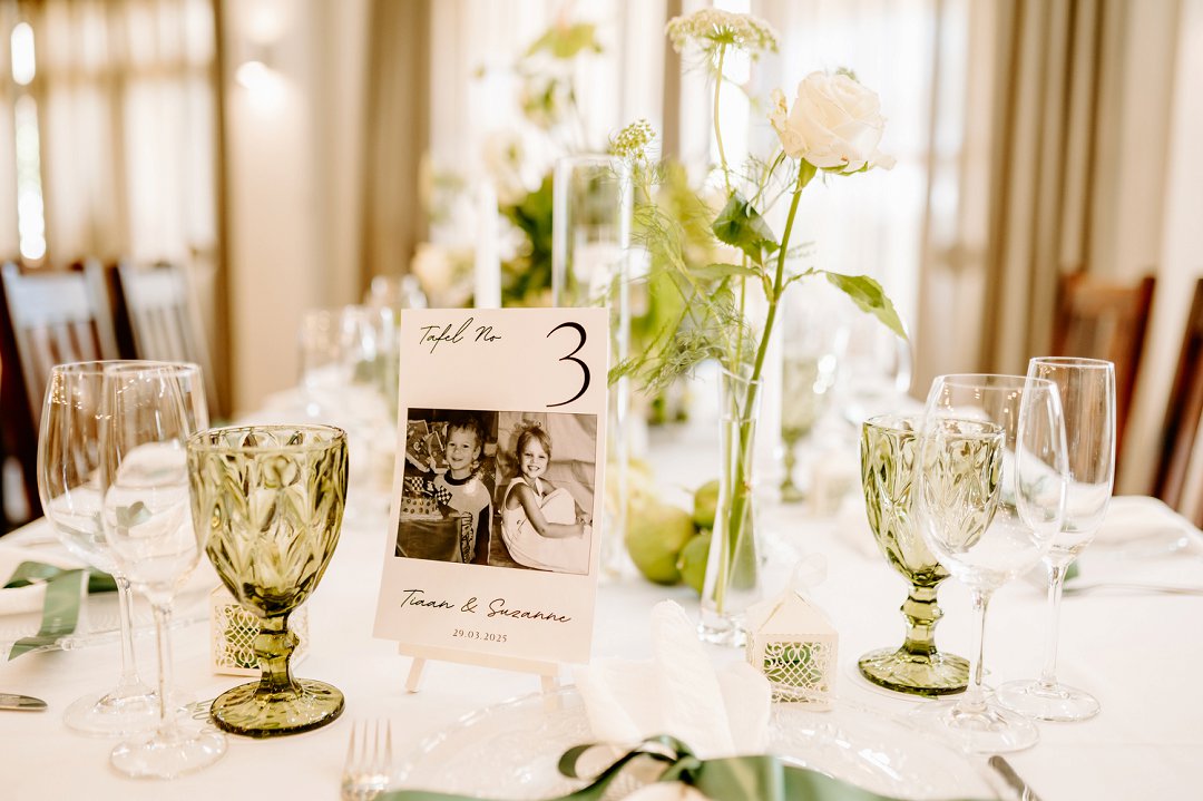 Een van ons gunsteling oomblikke was die aand vooraf, toe ons kaalvoet op die gras ons dans geoefen het terwyl ons families die braai geniet het. Onder die sterre, op die drumpel van vir-altyd, kon ons vir ’n oomblik stilstaan en die grootsheid van alles inneem. Die dag self was ‘n sprokiesverhaal waaroor ons steeds ‘n traan pink wanneer ons die foto’s kyk. Dit was nooit oor luuksheid nie, maar oor bedoeling. Ons troue was presies wat ons wou hê, ‘n dag gewortel in liefde, gemeenskap en betekenis.