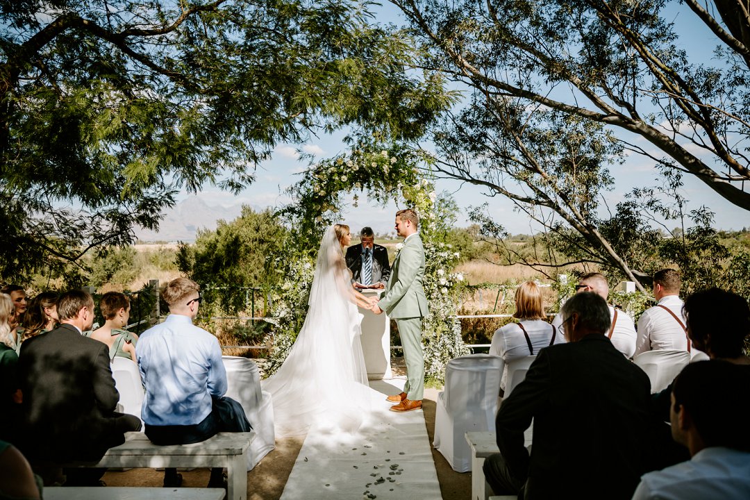 Ons het gedroom van ’n troue geïnspireer deur die romantiek van ’n Italiaanse villa: welige groenigheid, tafels swaar van kos, en lag wat tot laatnag weerklink. ’n Viering waar familie eerste kom, en nie net ‘n gebeurtenis wat in ’n paar gejaagde ure ingeprop word nie, maar ’n saamwees wat oor ’n hele naweek ontvou. Dit het ons verwagting oortref met ’n Vrydagaand-braai vol afwagting, ’n seremonie geanker in betekenis, ’n onthaal bruisend van vreugde, en ’n rustige Sondagoggend met lang afskeide. Dit was ongelooflik spesiaal met familie en vriende wat ver gereis het om óns te vier (broer en skoonsuster uit UK; familie uit Namibië ). Te danke aan Delsma se asemrowende skoonheid en voortreflike kos, is ons elegante droomtroue verwesenlik.
