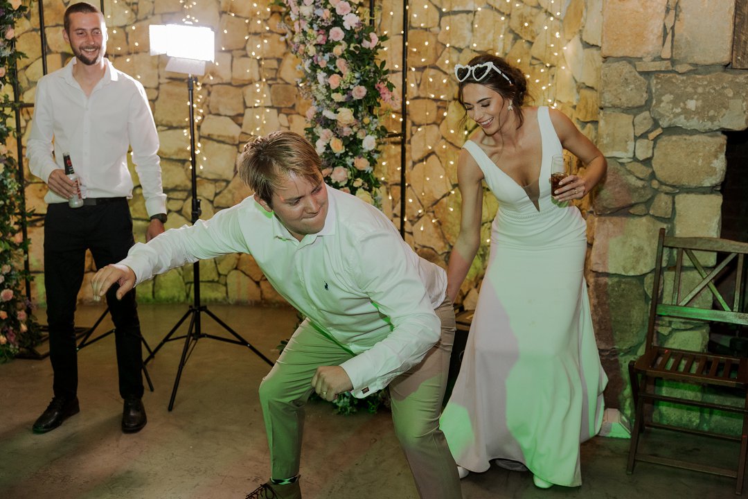 Wat ons troue werklik besonders gemaak het, was dat dit ń naweek byeenkoms was, asook die warm, gelukkige gevoel – en natuurlik die onvergeetlike oomblikke soos die strooijonkers en bruidegom se ikoniese Faffie-onderbroeke! Dit was ’n dag waar ons gewens het tyd kon net vir ’n rukkie stil staan; waar elke oomblik deurtrek was van oneindige liefde, onbeheerde lag en opregte geluk – vol energie, warmte en ongelooflike pret. Ons troue was nie net ’n viering van ’n verbintenis nie, maar ’n viering van liefde, styl, saamwees, beste pelle en nuwe beginne. ’n Dag wat ons vir altyd sal koester – beslis ons gunsteling naweek sover.